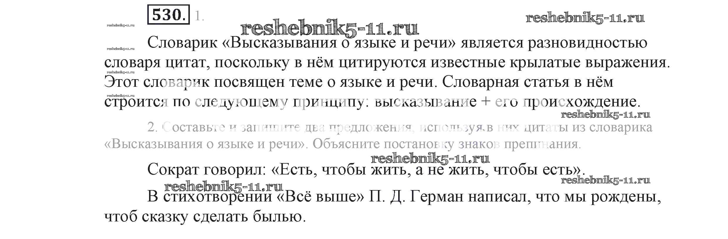 Готовая домашняя работа с ответами по Русскому языку за 9 класс Львова, Львов Учебник Мнемозина 2016 ФГОС - Упражнения 530