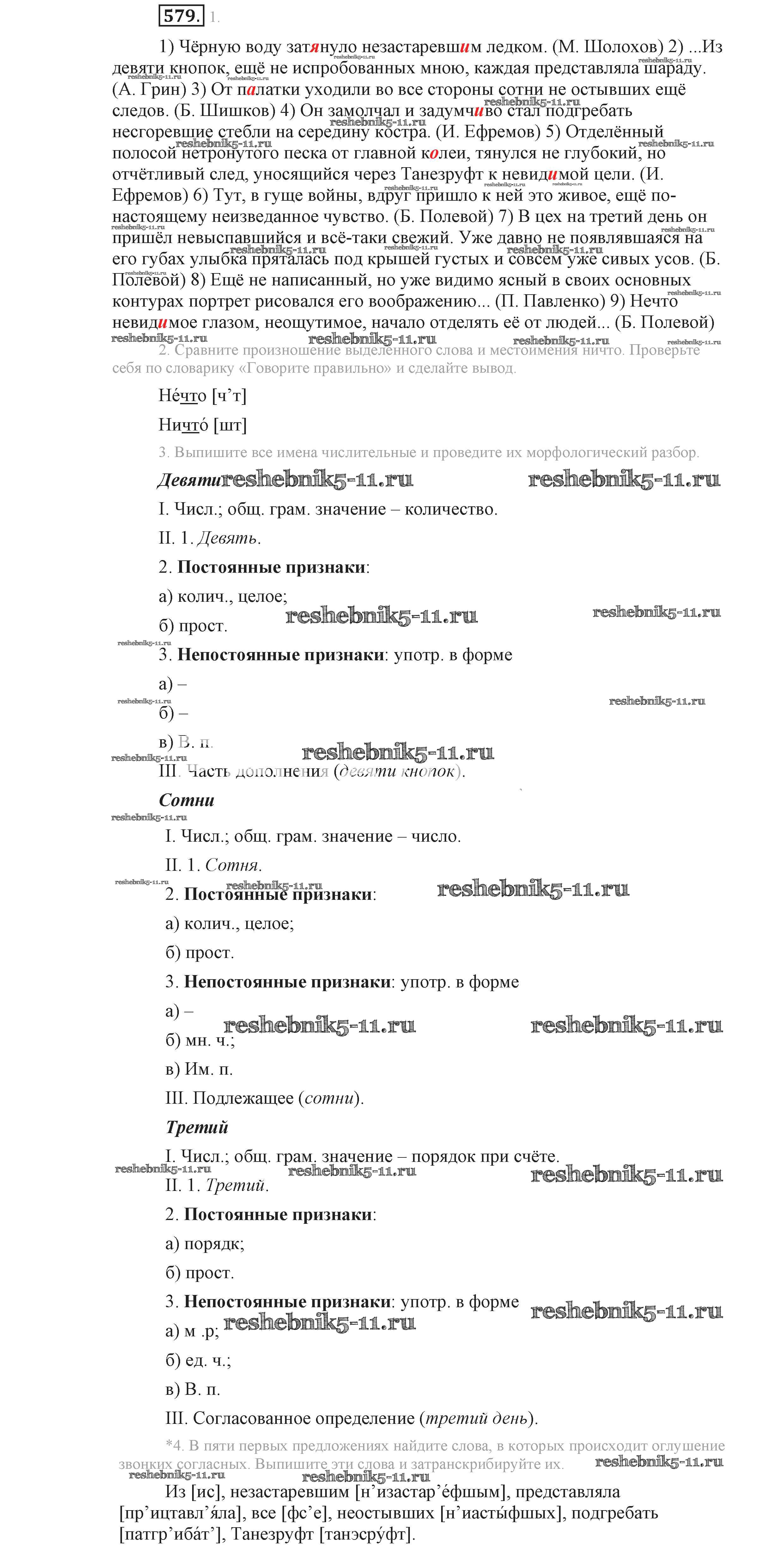 Готовая домашняя работа с ответами по Русскому языку за 9 класс Львова, Львов Учебник Мнемозина 2016 ФГОС - Упражнения 579
