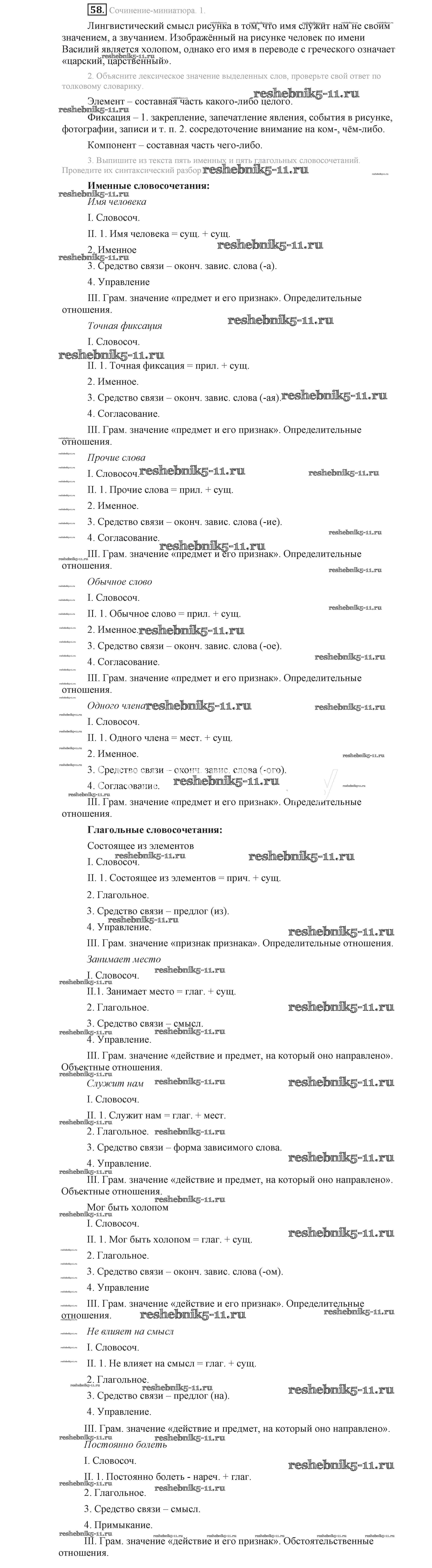 Готовая домашняя работа с ответами по Русскому языку за 9 класс Львова, Львов Учебник Мнемозина 2016 ФГОС - Упражнения 58
