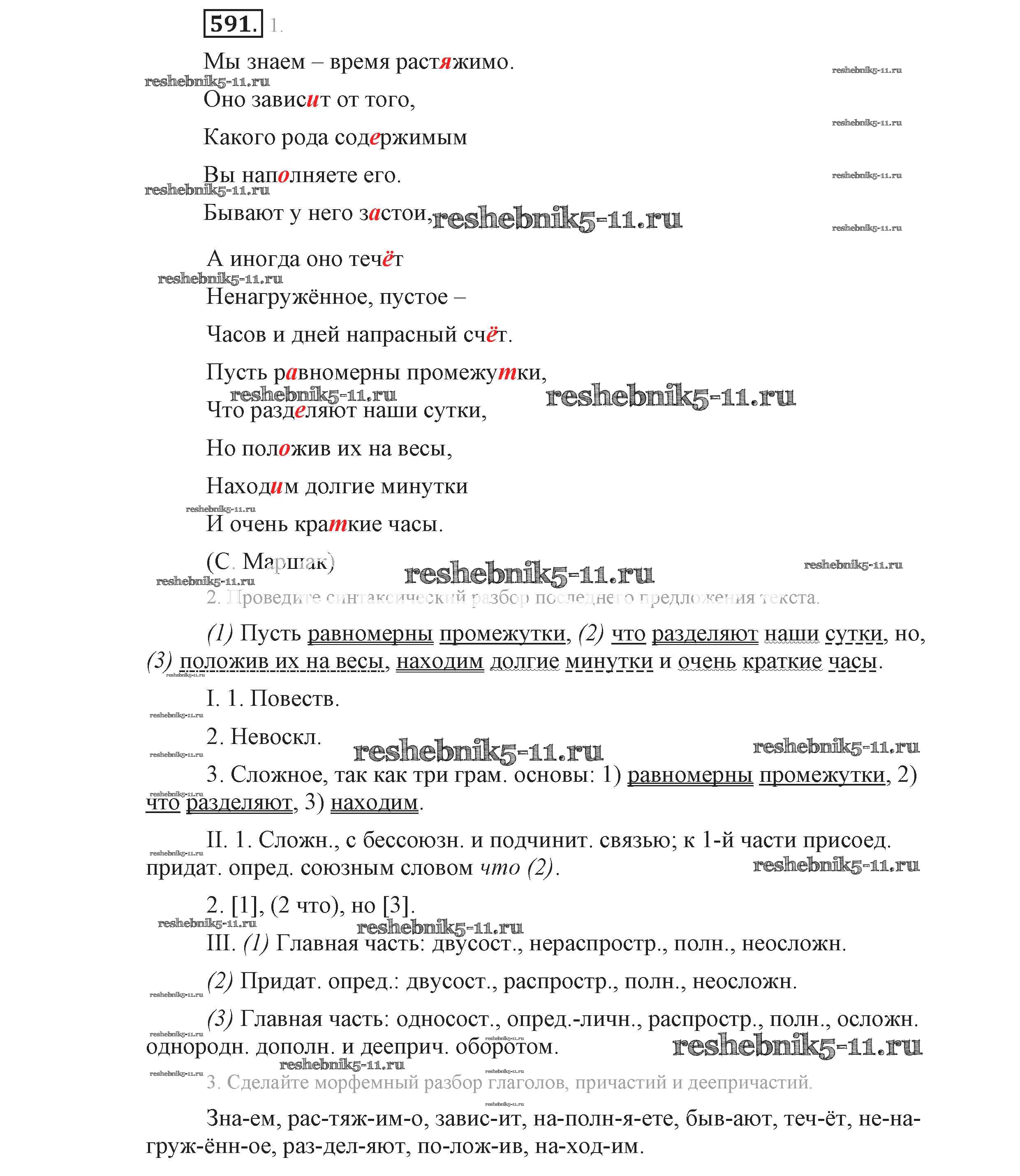 Готовая домашняя работа с ответами по Русскому языку за 9 класс Львова, Львов Учебник Мнемозина 2016 ФГОС - Упражнения 591
