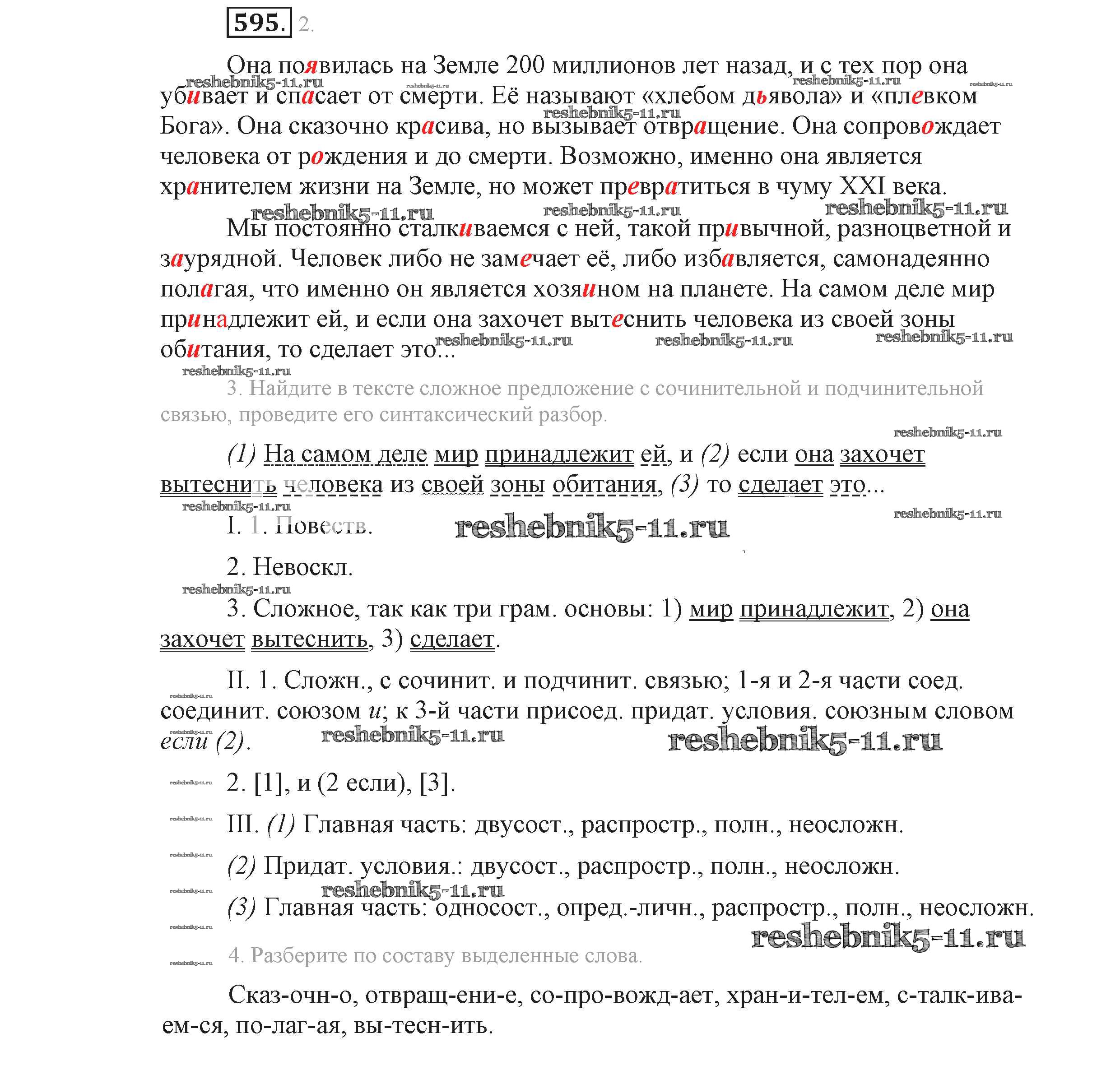 Готовая домашняя работа с ответами по Русскому языку за 9 класс Львова, Львов Учебник Мнемозина 2016 ФГОС - Упражнения 595
