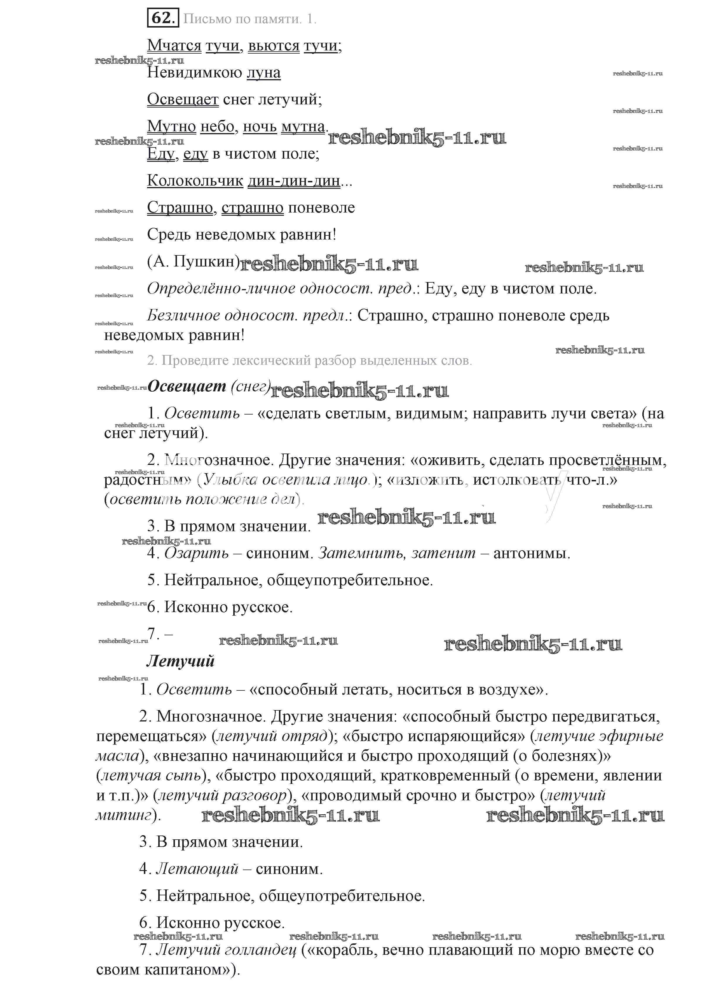 Готовая домашняя работа с ответами по Русскому языку за 9 класс Львова, Львов Учебник Мнемозина 2016 ФГОС - Упражнения 62
