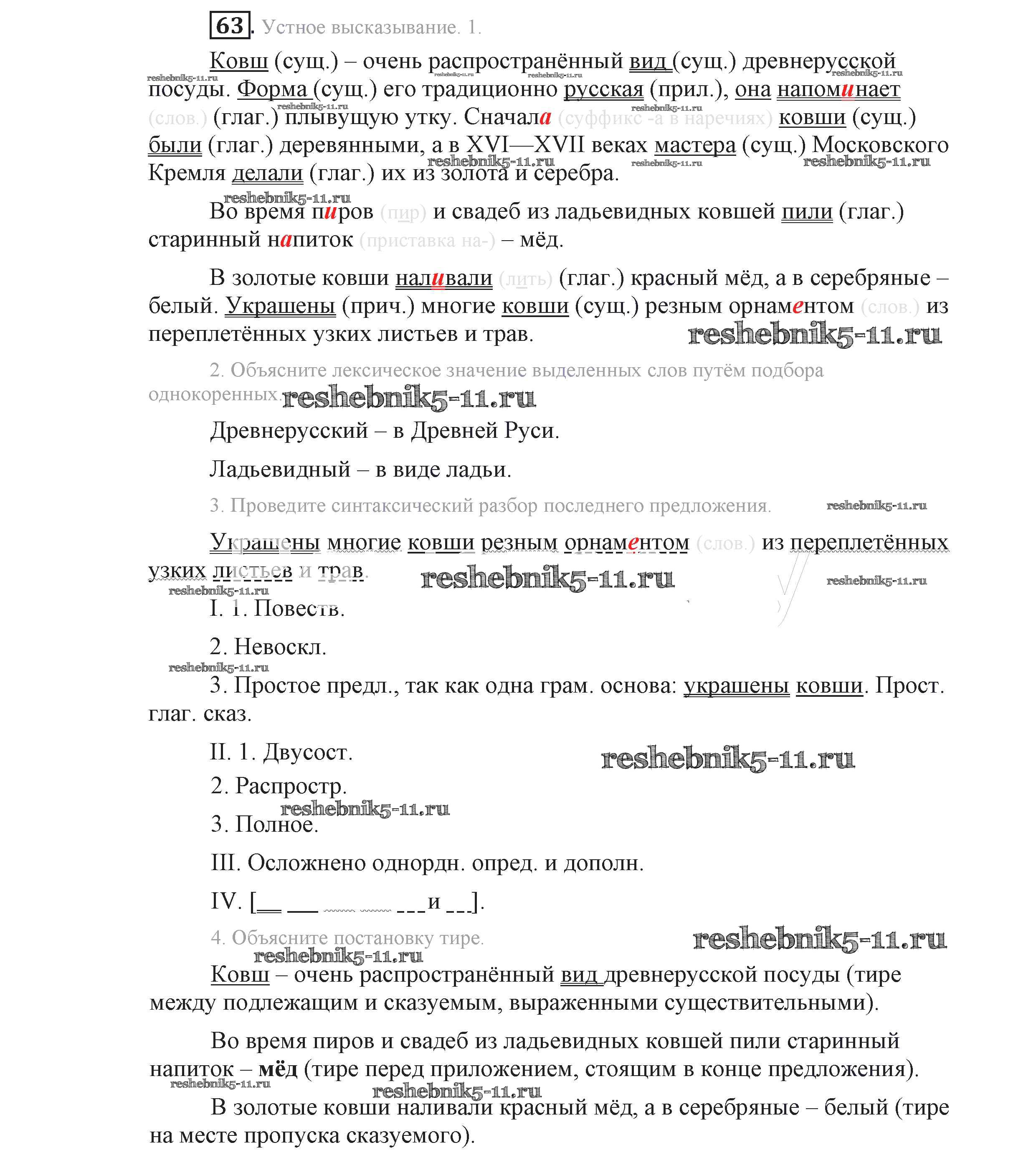 Готовая домашняя работа с ответами по Русскому языку за 9 класс Львова, Львов Учебник Мнемозина 2016 ФГОС - Упражнения 63