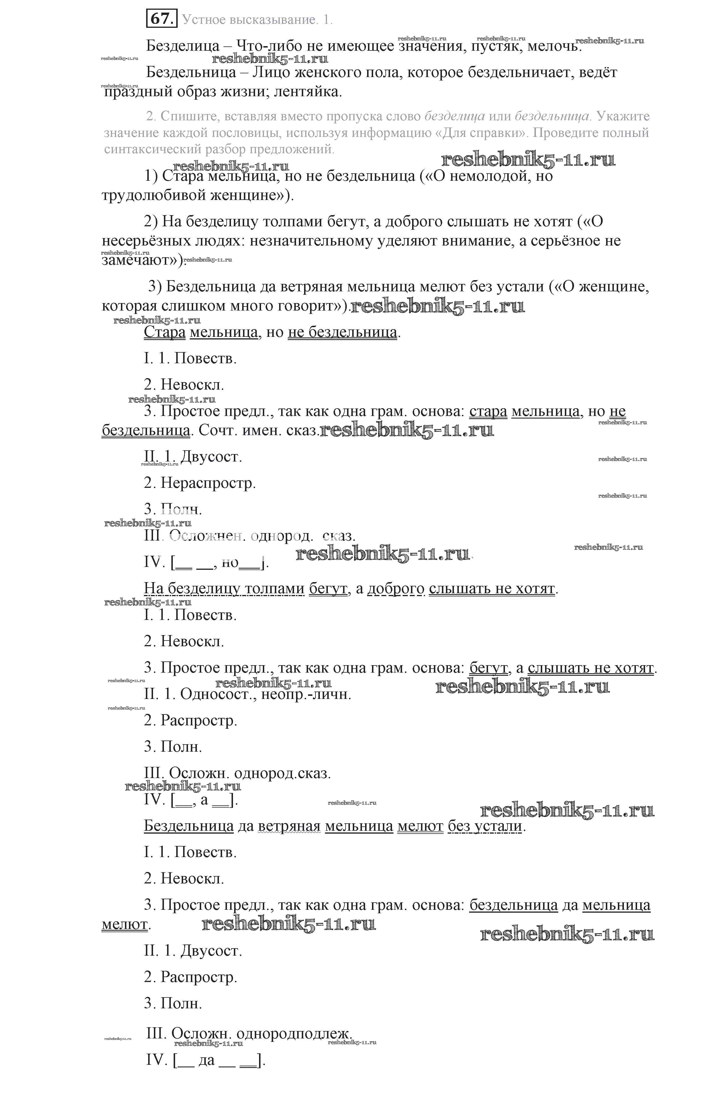 Готовая домашняя работа с ответами по Русскому языку за 9 класс Львова, Львов Учебник Мнемозина 2016 ФГОС - Упражнения 67