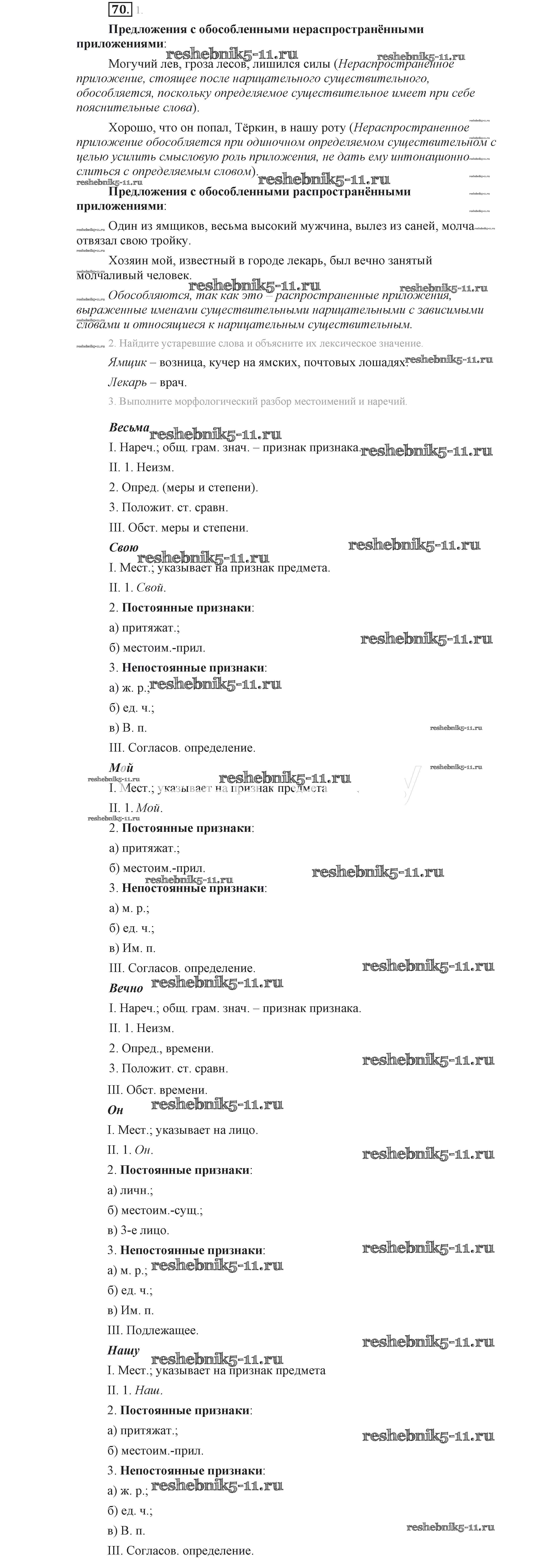 Готовая домашняя работа с ответами по Русскому языку за 9 класс Львова, Львов Учебник Мнемозина 2016 ФГОС - Упражнения 70