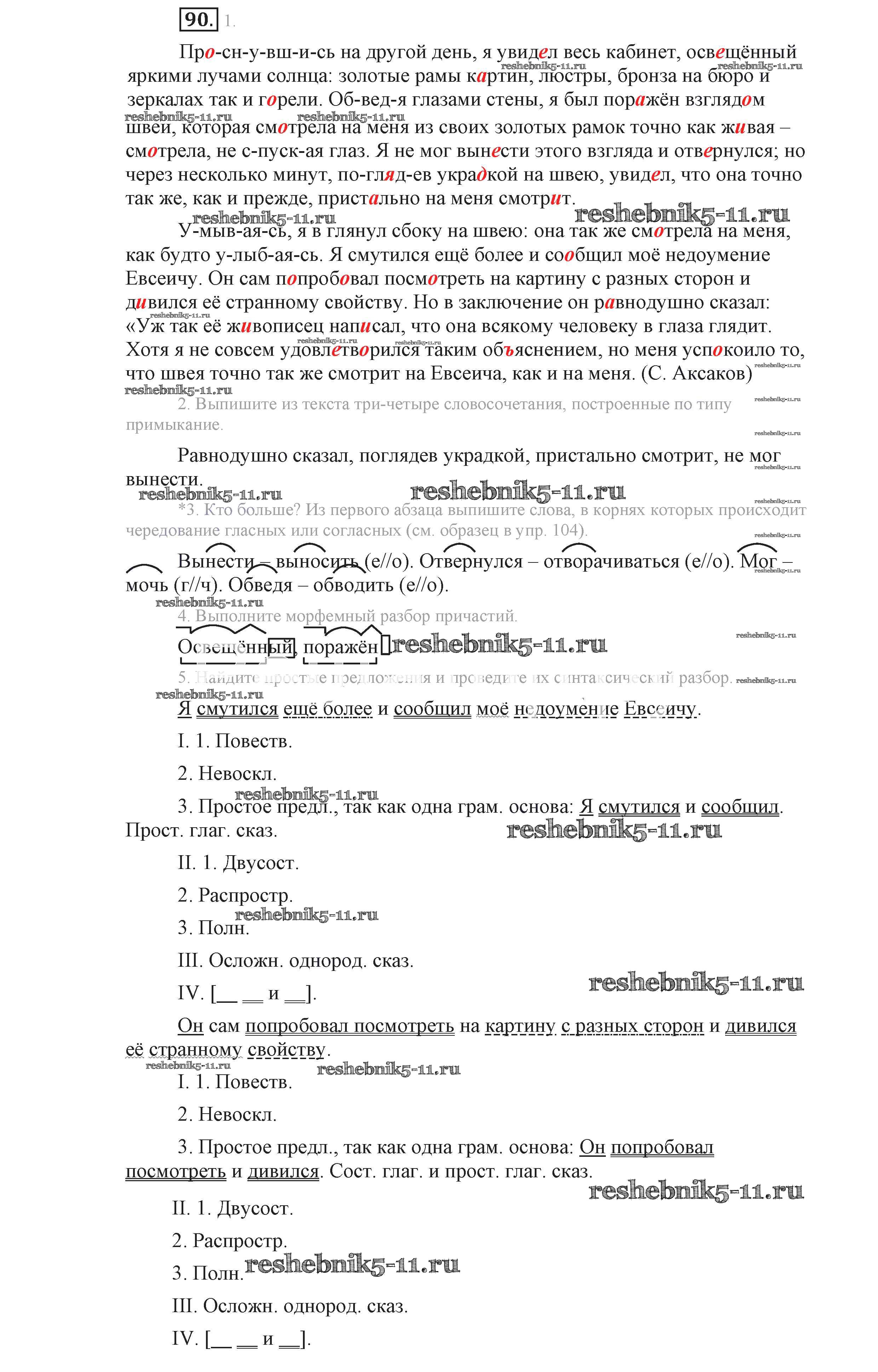 Готовая домашняя работа с ответами по Русскому языку за 9 класс Львова, Львов Учебник Мнемозина 2016 ФГОС - Упражнения 90