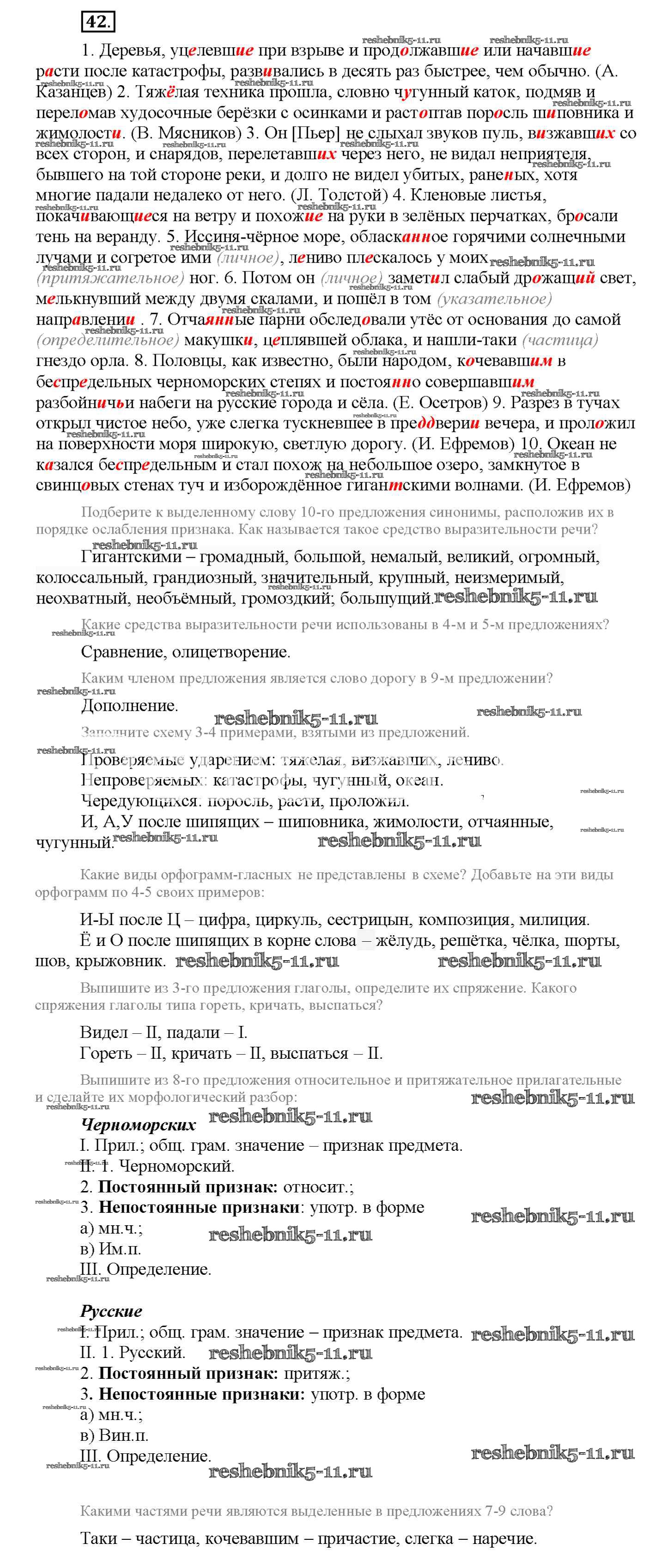 Готовая домашняя работа с ответами по Русскому языку за 9 класс Богданова Рабочая тетрадь Часть 1, 2, 3 Генеза 2017 - Упражнения 42