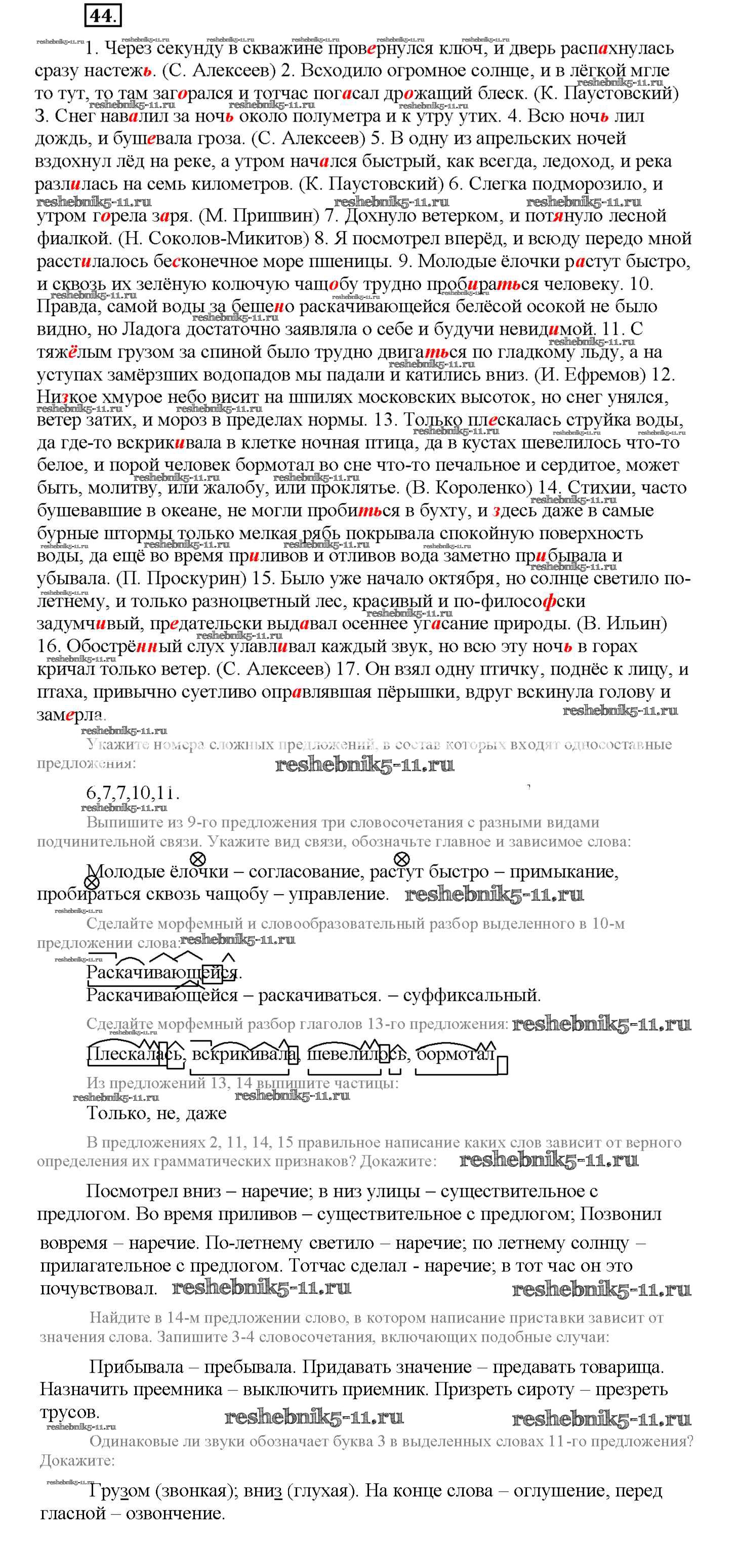 Готовая домашняя работа с ответами по Русскому языку за 9 класс Богданова Рабочая тетрадь Часть 1, 2, 3 Генеза 2017 - Упражнения 44