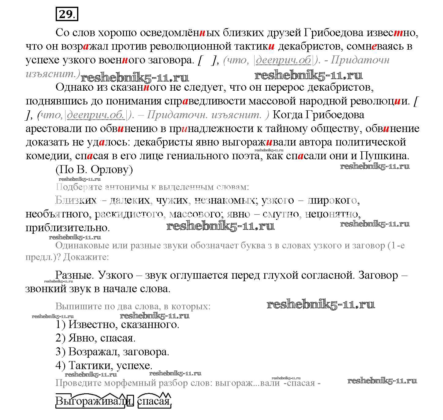 Готовая домашняя работа с ответами по Русскому языку за 9 класс Богданова Рабочая тетрадь Часть 1, 2, 3 Генеза 2017 - Упражнения 29