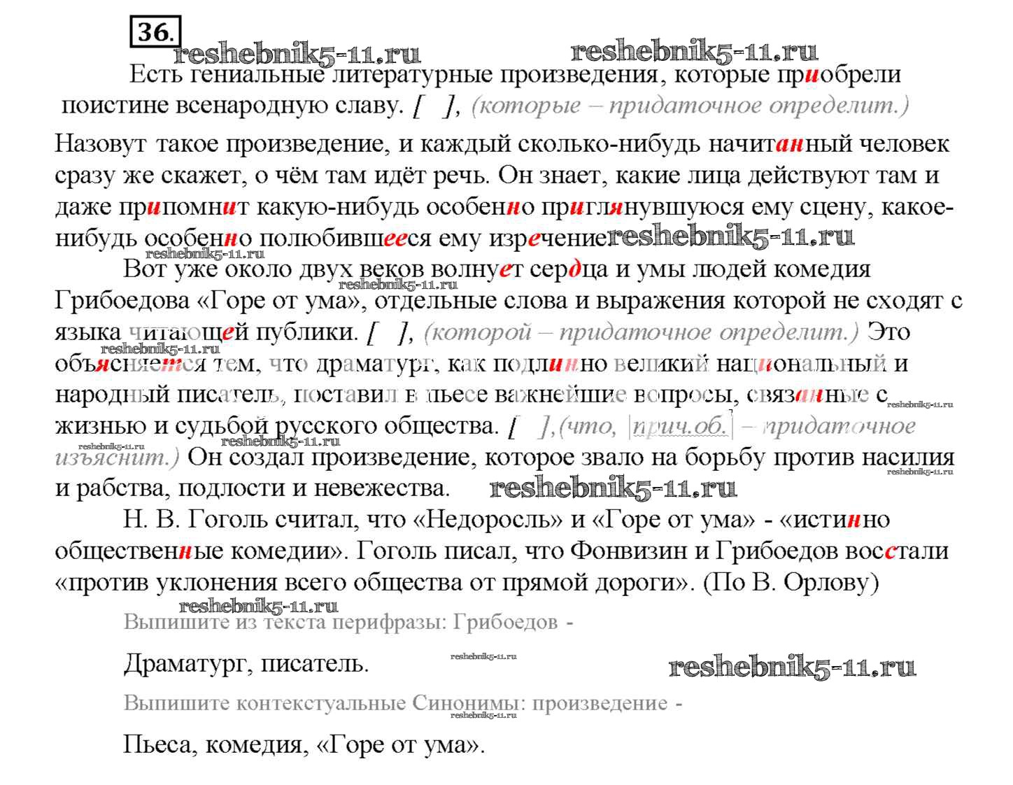 Готовая домашняя работа с ответами по Русскому языку за 9 класс Богданова Рабочая тетрадь Часть 1, 2, 3 Генеза 2017 - Упражнения 36