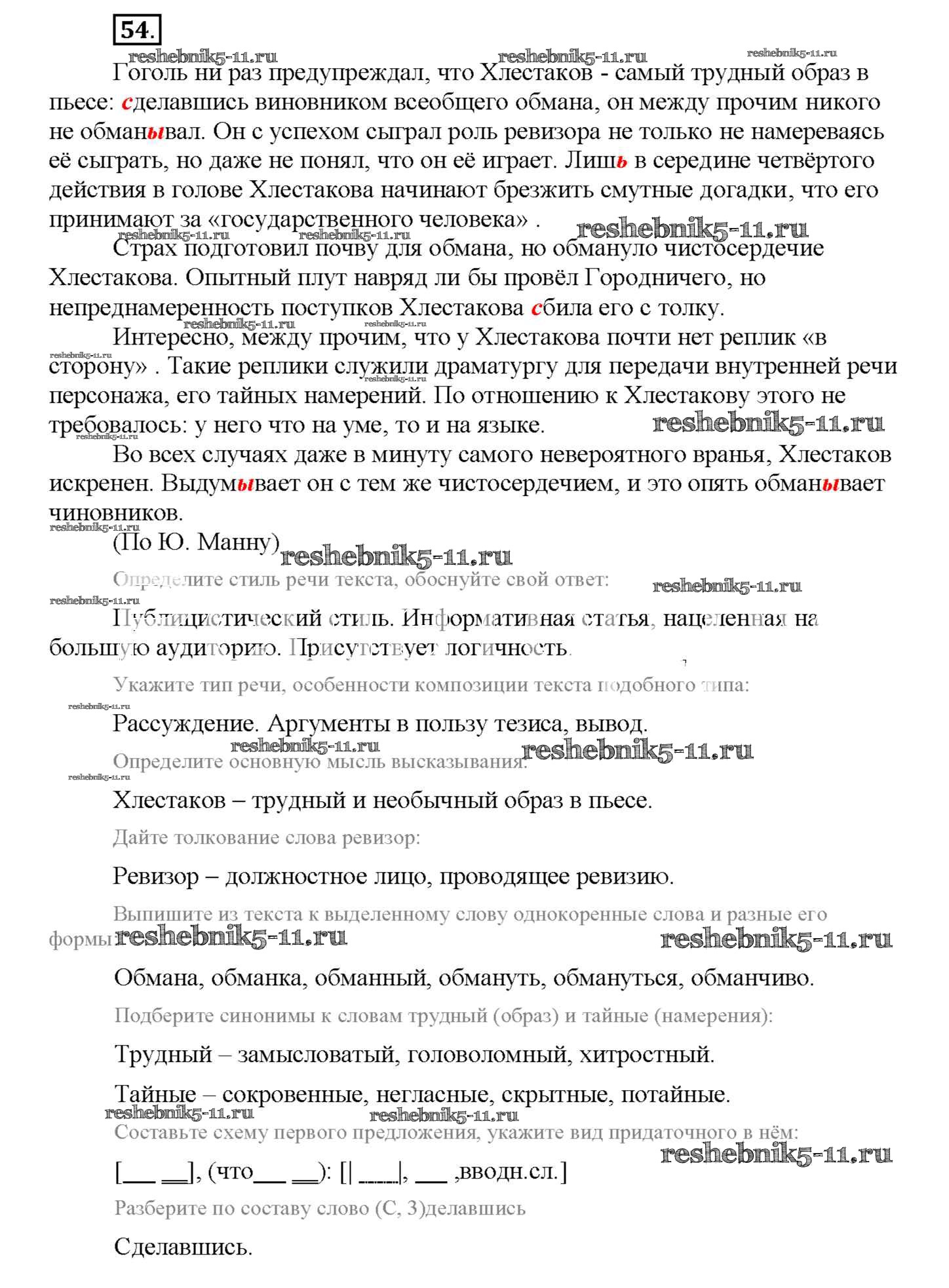 Готовая домашняя работа с ответами по Русскому языку за 9 класс Богданова Рабочая тетрадь Часть 1, 2, 3 Генеза 2017 - Упражнения 54