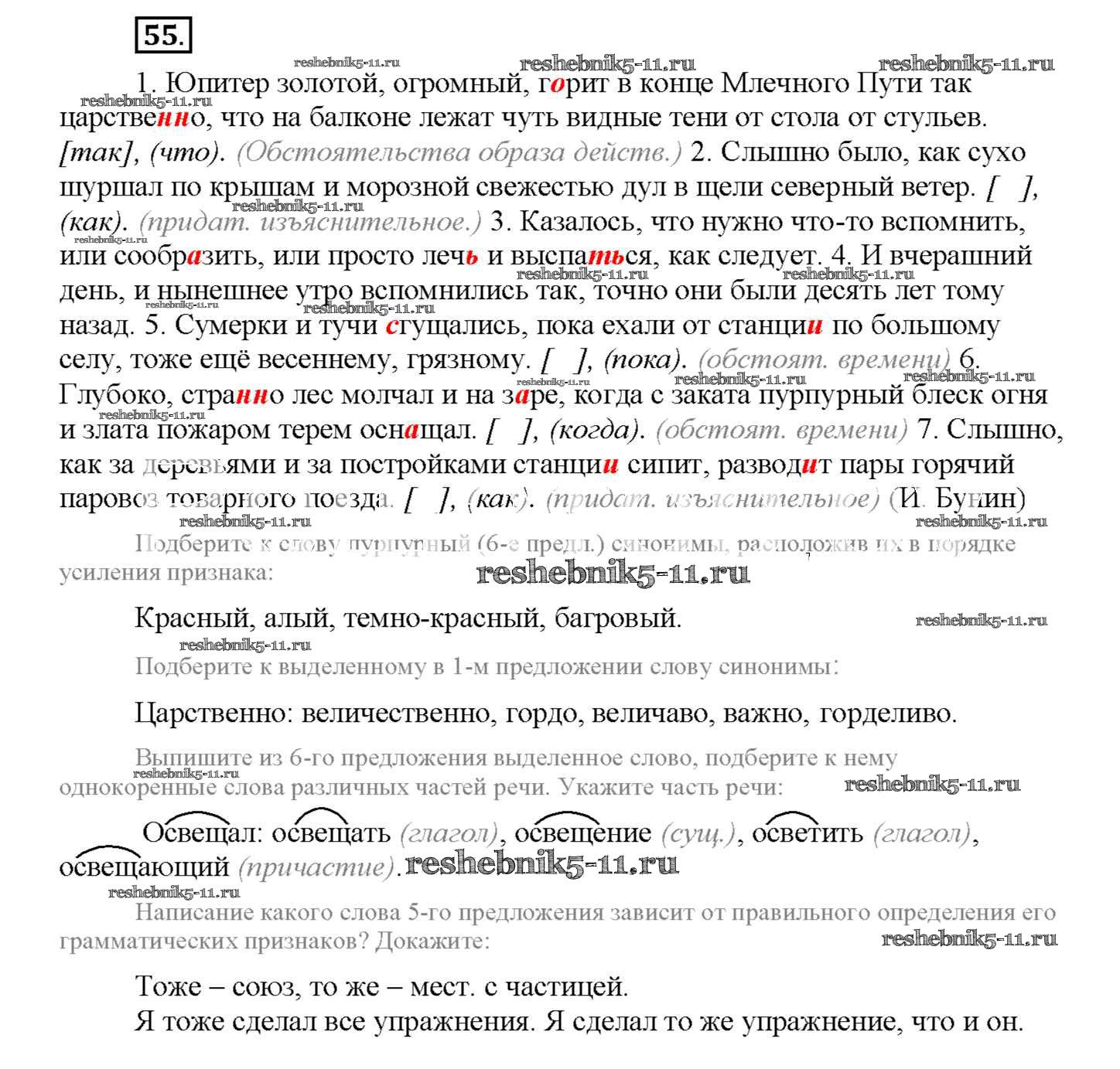 Готовая домашняя работа с ответами по Русскому языку за 9 класс Богданова Рабочая тетрадь Часть 1, 2, 3 Генеза 2017 - Упражнения 55