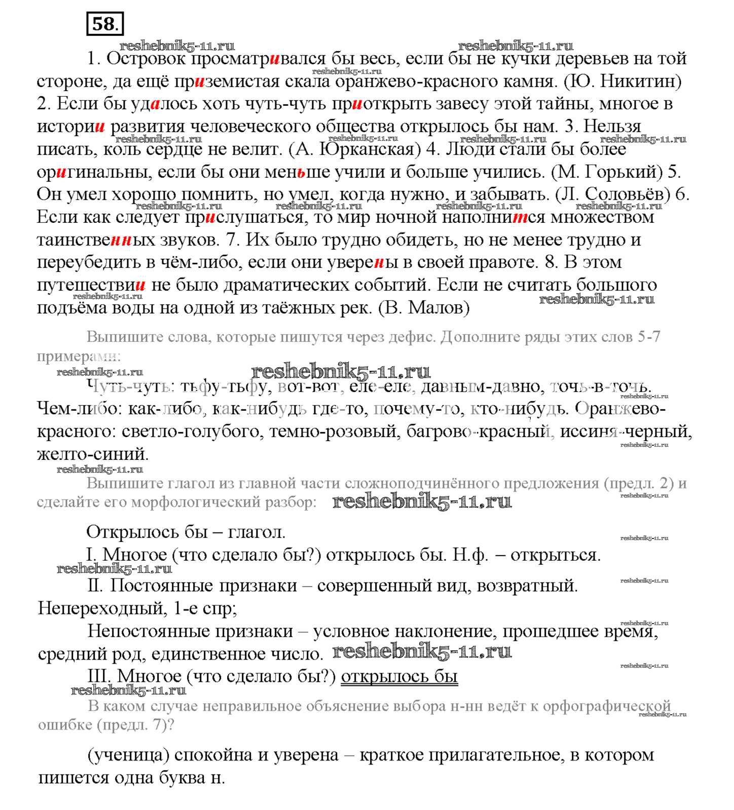 Готовая домашняя работа с ответами по Русскому языку за 9 класс Богданова Рабочая тетрадь Часть 1, 2, 3 Генеза 2017 - Упражнения 58