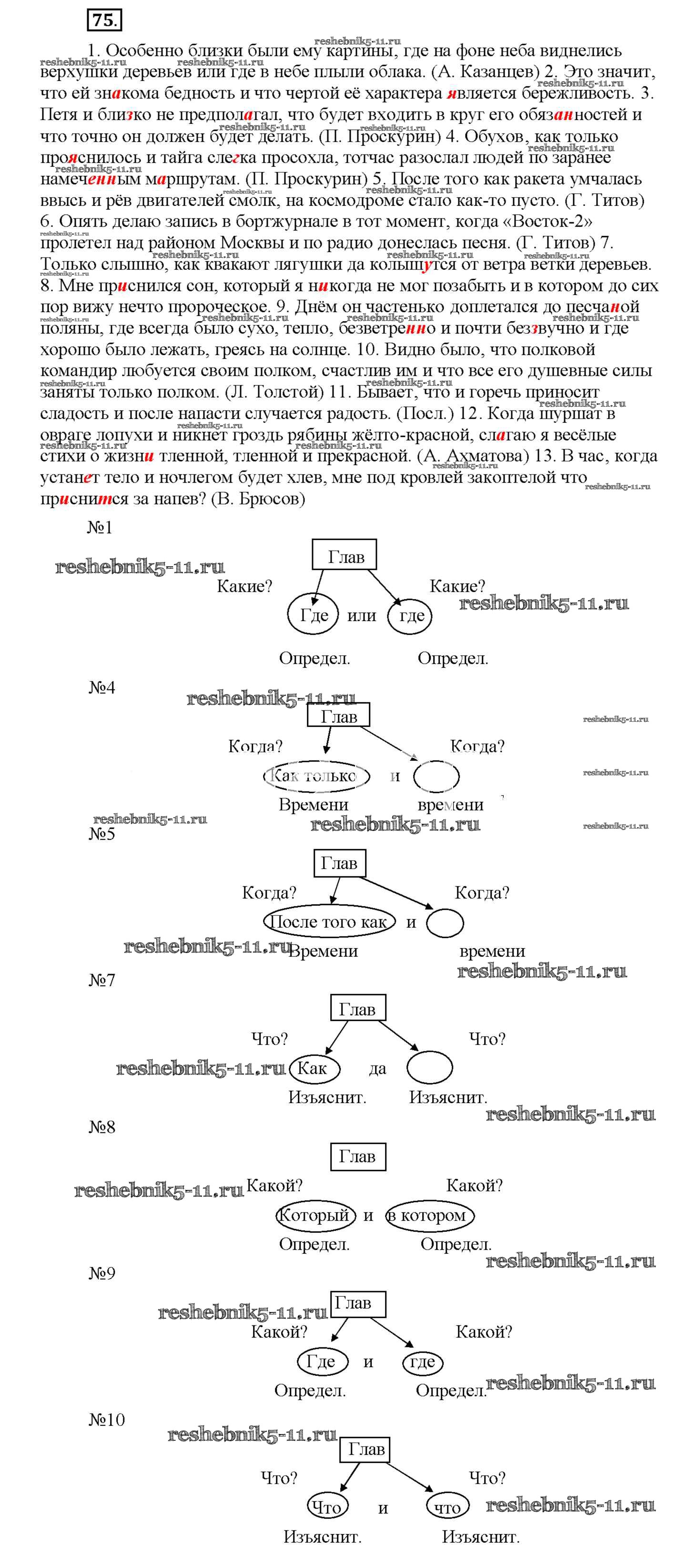 Готовая домашняя работа с ответами по Русскому языку за 9 класс Богданова Рабочая тетрадь Часть 1, 2, 3 Генеза 2017 - Упражнения 75