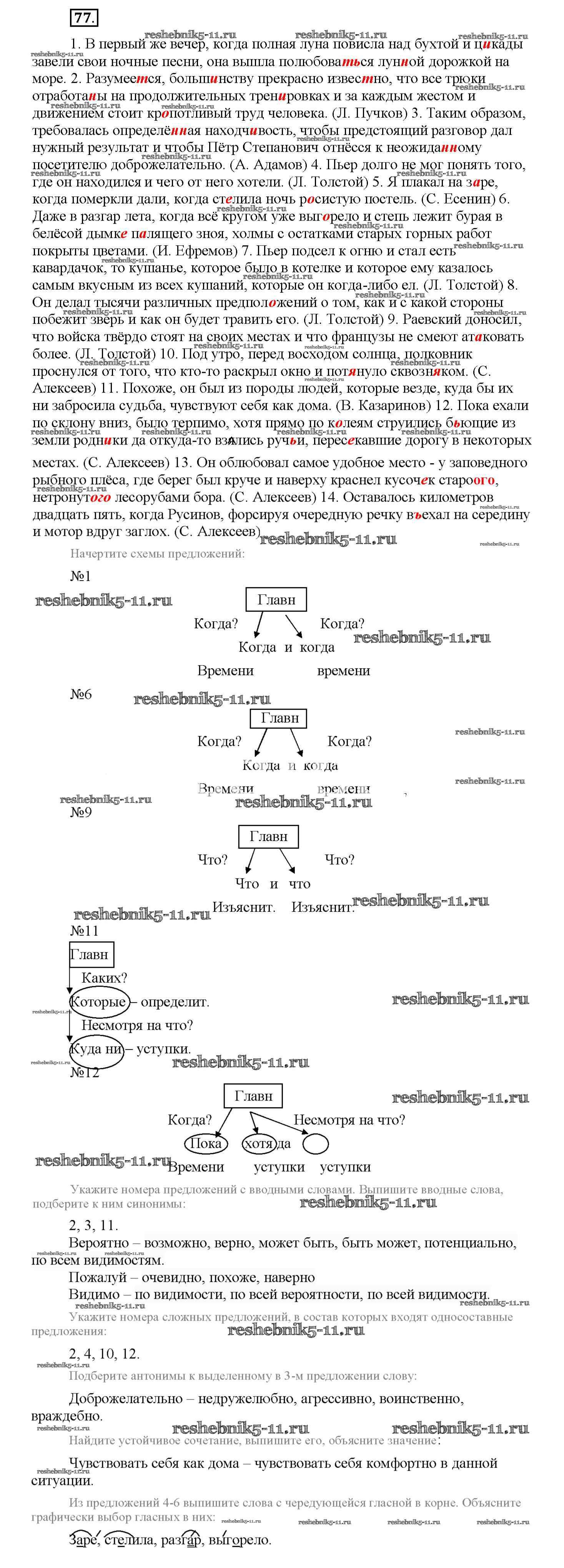 Готовая домашняя работа с ответами по Русскому языку за 9 класс Богданова Рабочая тетрадь Часть 1, 2, 3 Генеза 2017 - Упражнения 77