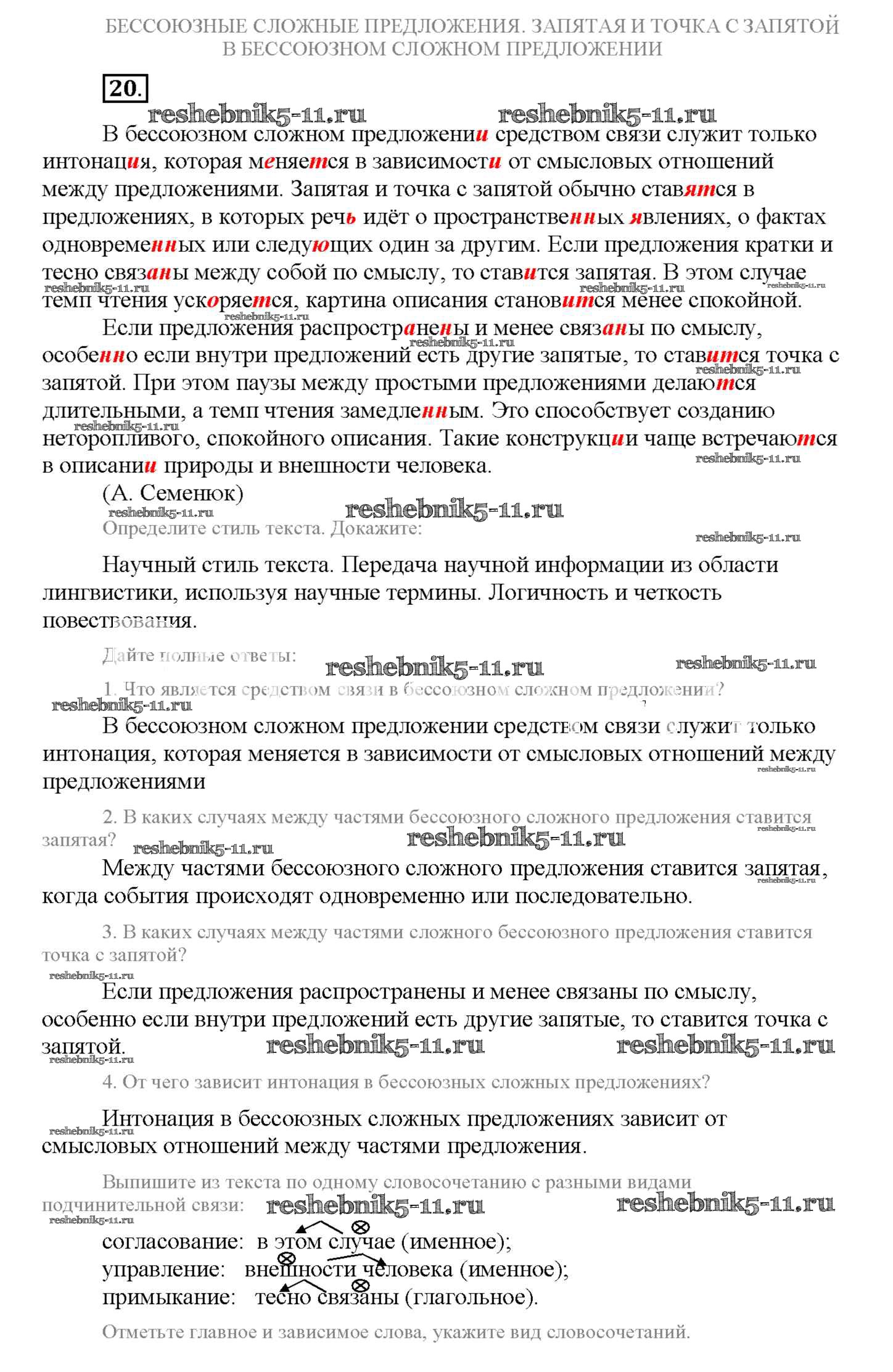 Готовая домашняя работа с ответами по Русскому языку за 9 класс Богданова Рабочая тетрадь Часть 1, 2, 3 Генеза 2017 - Упражнения 20