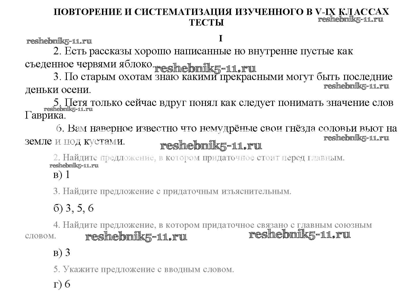 Готовая домашняя работа с ответами по Русскому языку за 9 класс Богданова Рабочая тетрадь Часть 1, 2, 3 Генеза 2017 - Повторение и систематизация изученного в V-IХ классах Тест 1