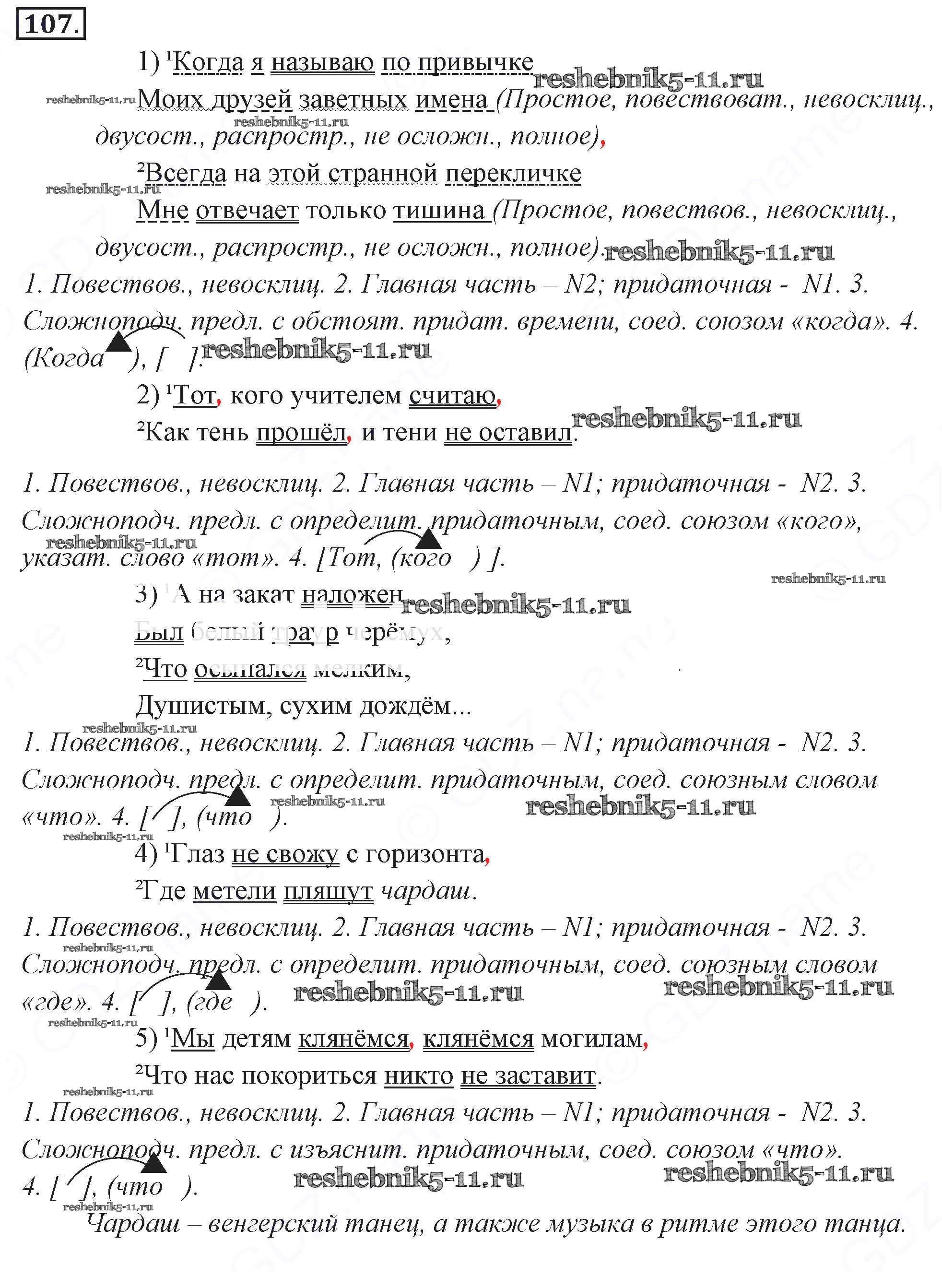 Готовая домашняя работа с ответами по Русскому языку за 9 класс Разумовская, Львова, Капинос, Львов Учебник Вертикаль Дрофа 2018 ФГОС - Упражнения 107