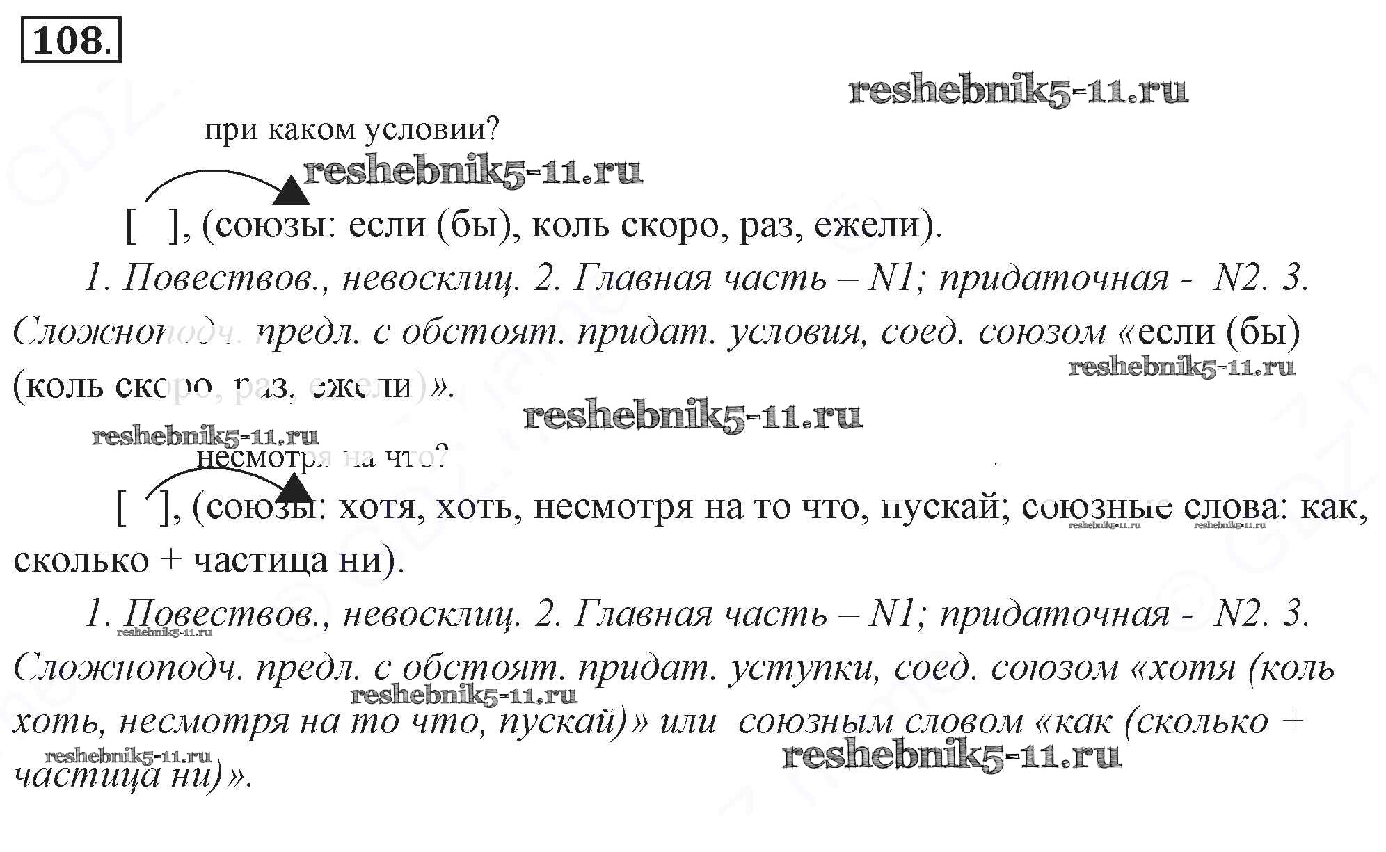 Готовая домашняя работа с ответами по Русскому языку за 9 класс Разумовская, Львова, Капинос, Львов Учебник Вертикаль Дрофа 2018 ФГОС - Упражнения 108