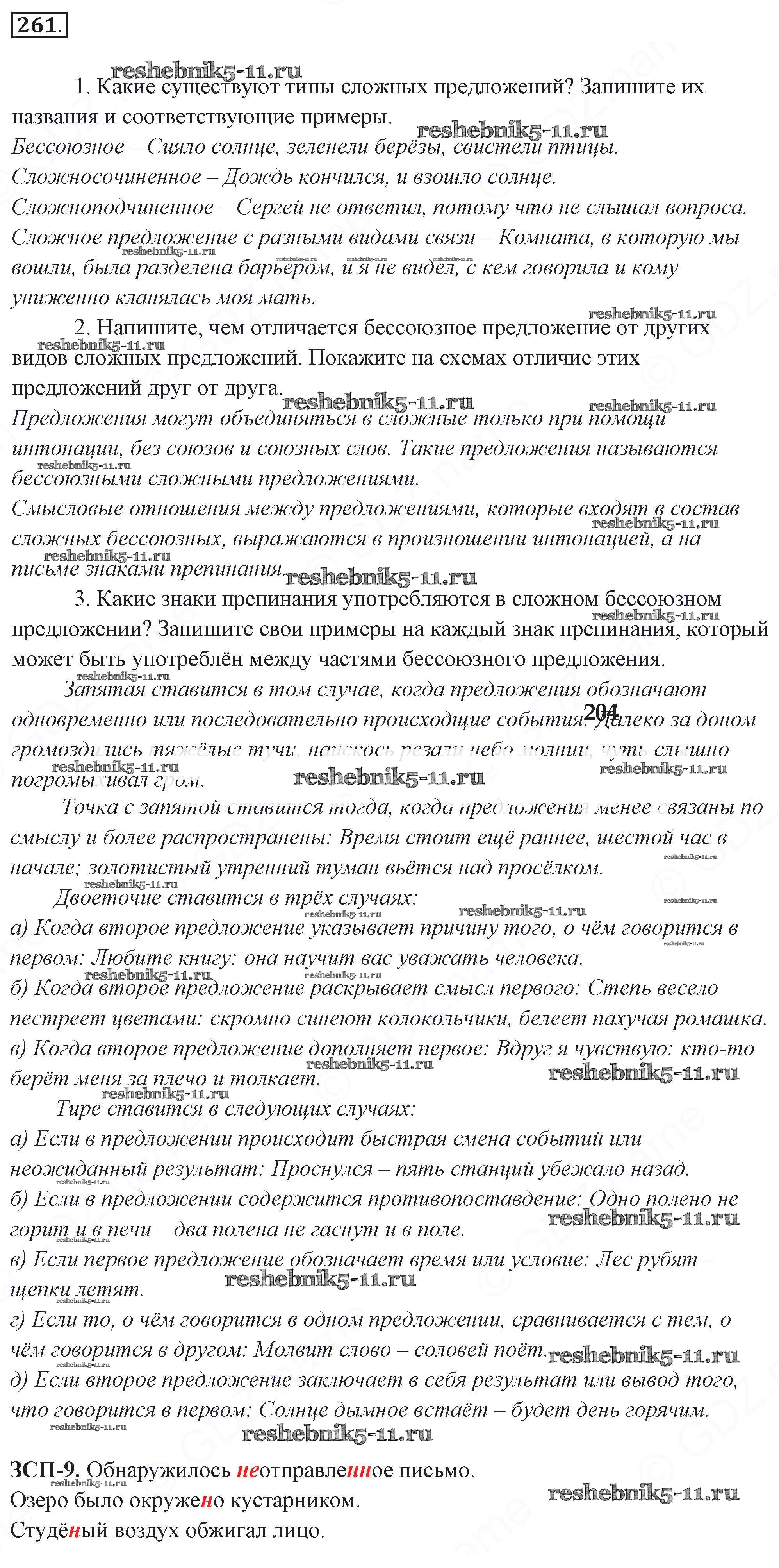 Готовая домашняя работа с ответами по Русскому языку за 9 класс Разумовская, Львова, Капинос, Львов Учебник Вертикаль Дрофа 2018 ФГОС - Упражнения 261