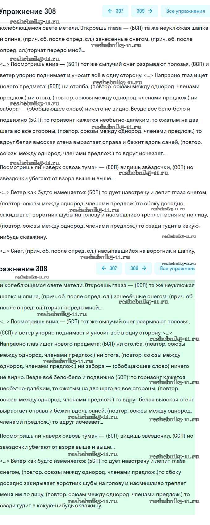 Готовая домашняя работа с ответами по Русскому языку за 9 класс Разумовская, Львова, Капинос, Львов Учебник Вертикаль Дрофа 2018 ФГОС - Упражнения 308
