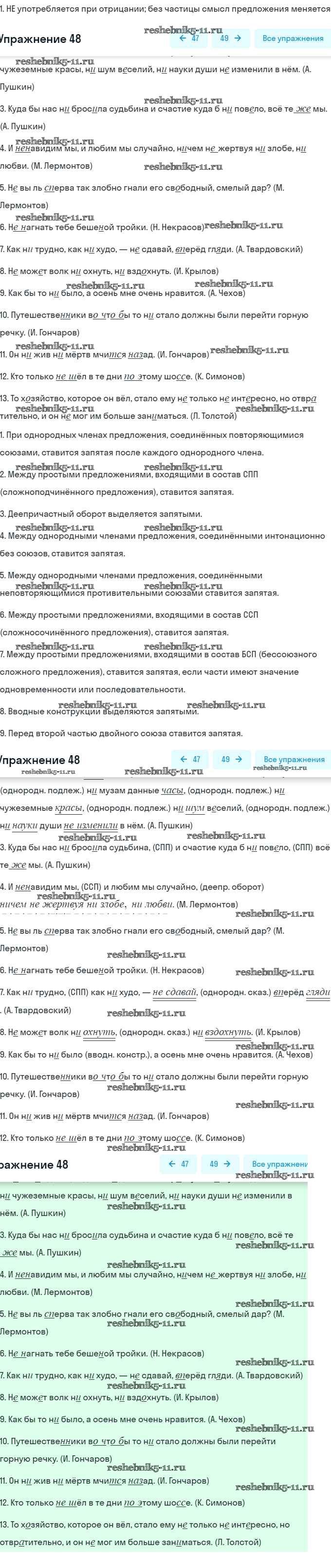 Готовая домашняя работа с ответами по Русскому языку за 9 класс Разумовская, Львова, Капинос, Львов Учебник Вертикаль Дрофа 2018 ФГОС - Упражнения 48