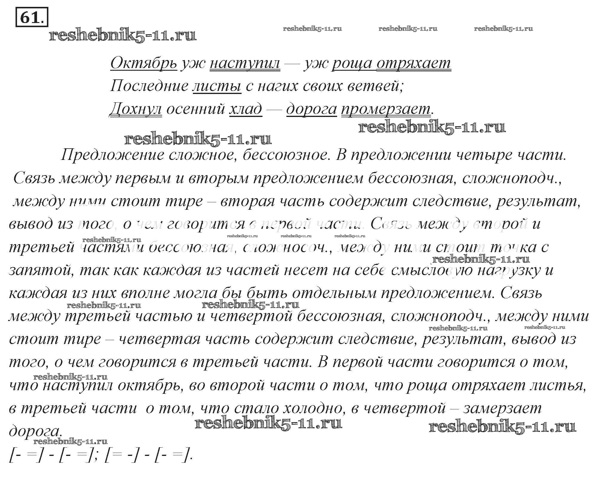 Готовая домашняя работа с ответами по Русскому языку за 9 класс Разумовская, Львова, Капинос, Львов Учебник Вертикаль Дрофа 2018 ФГОС - Упражнения 61
