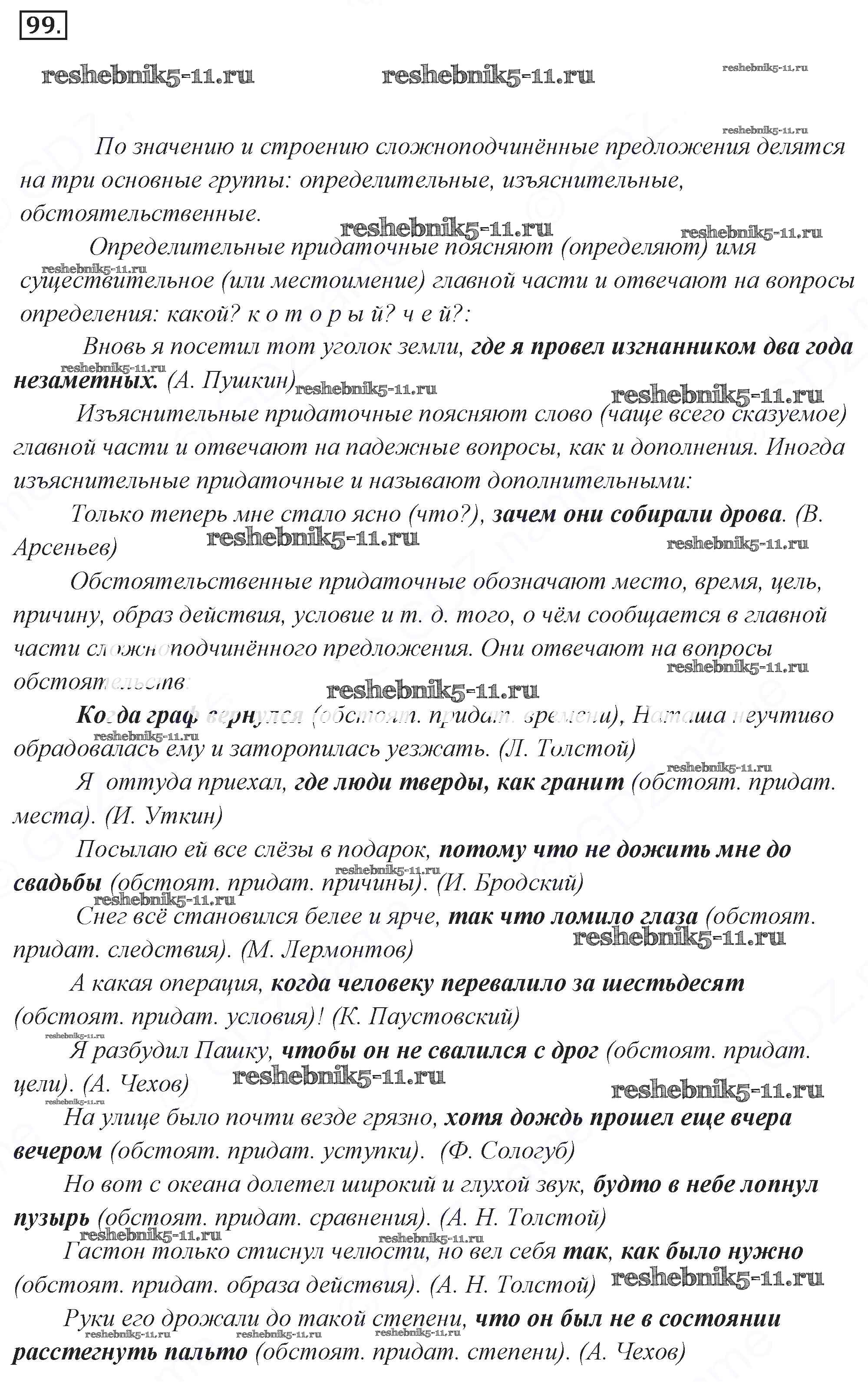 Готовая домашняя работа с ответами по Русскому языку за 9 класс Разумовская, Львова, Капинос, Львов Учебник Вертикаль Дрофа 2018 ФГОС - Упражнения 99
