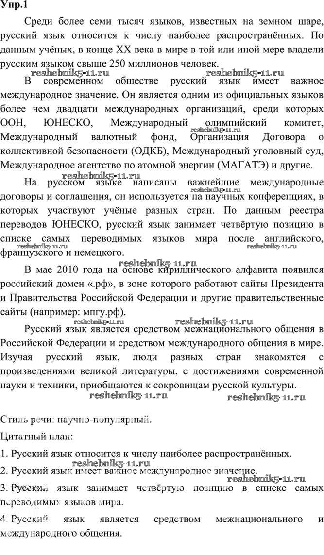Русский язык за 9 класс Бархударов Учебник Просвещение упражнение 1
