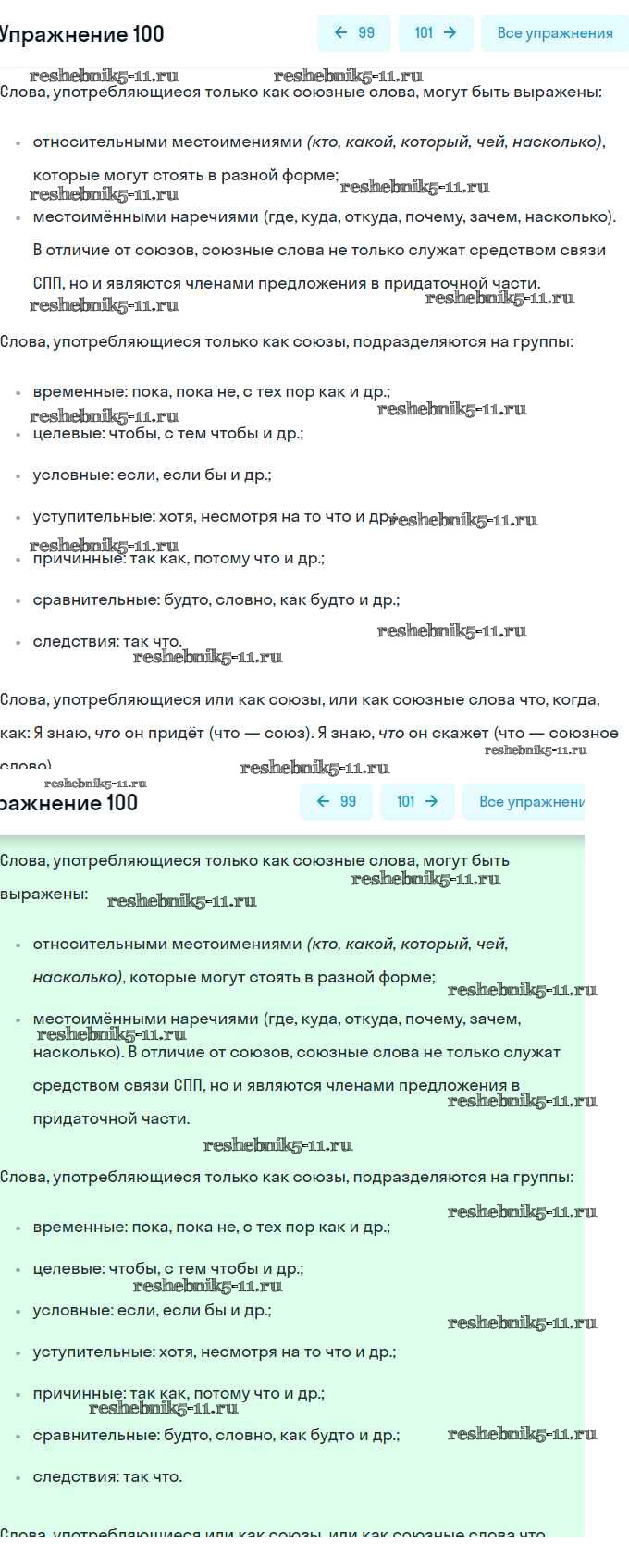 Готовая домашняя работа с ответами по Русскому языку за 9 класс Бархударов, Крючков, Максимов, Чешко Учебник Просвещение 2011 ФГОС - Упражнения 100