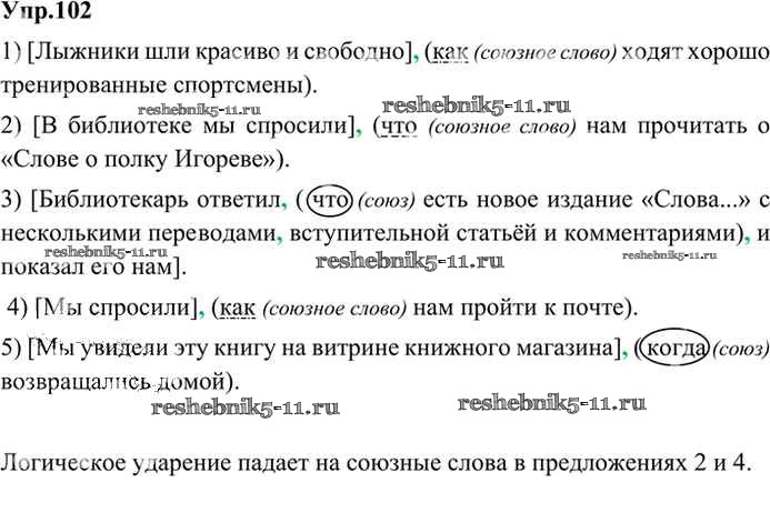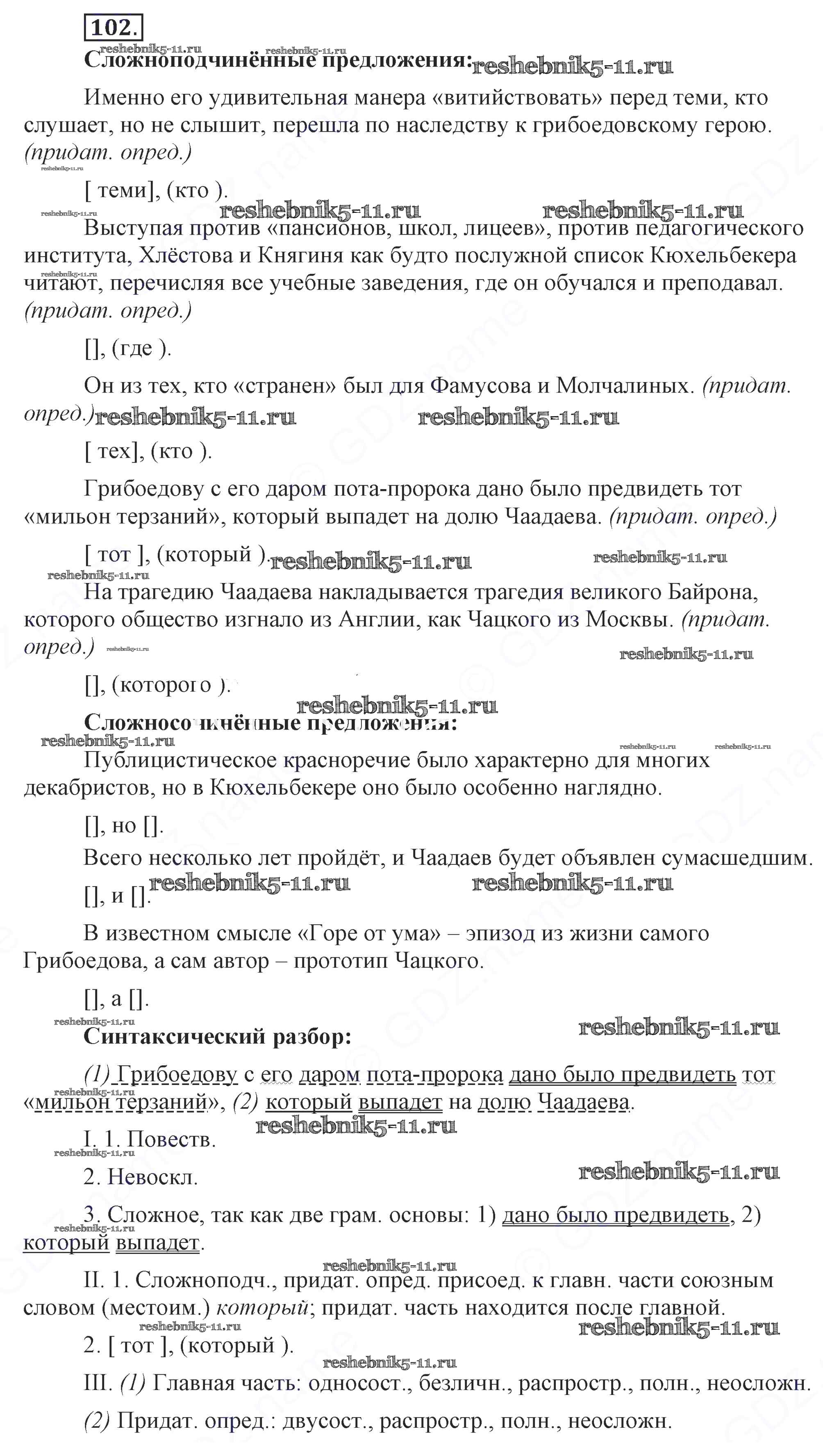 Готовая домашняя работа с ответами по Русскому языку за 9 класс Бархударов, Крючков, Максимов, Чешко Учебник Просвещение 2011 ФГОС - Упражнения 102