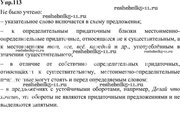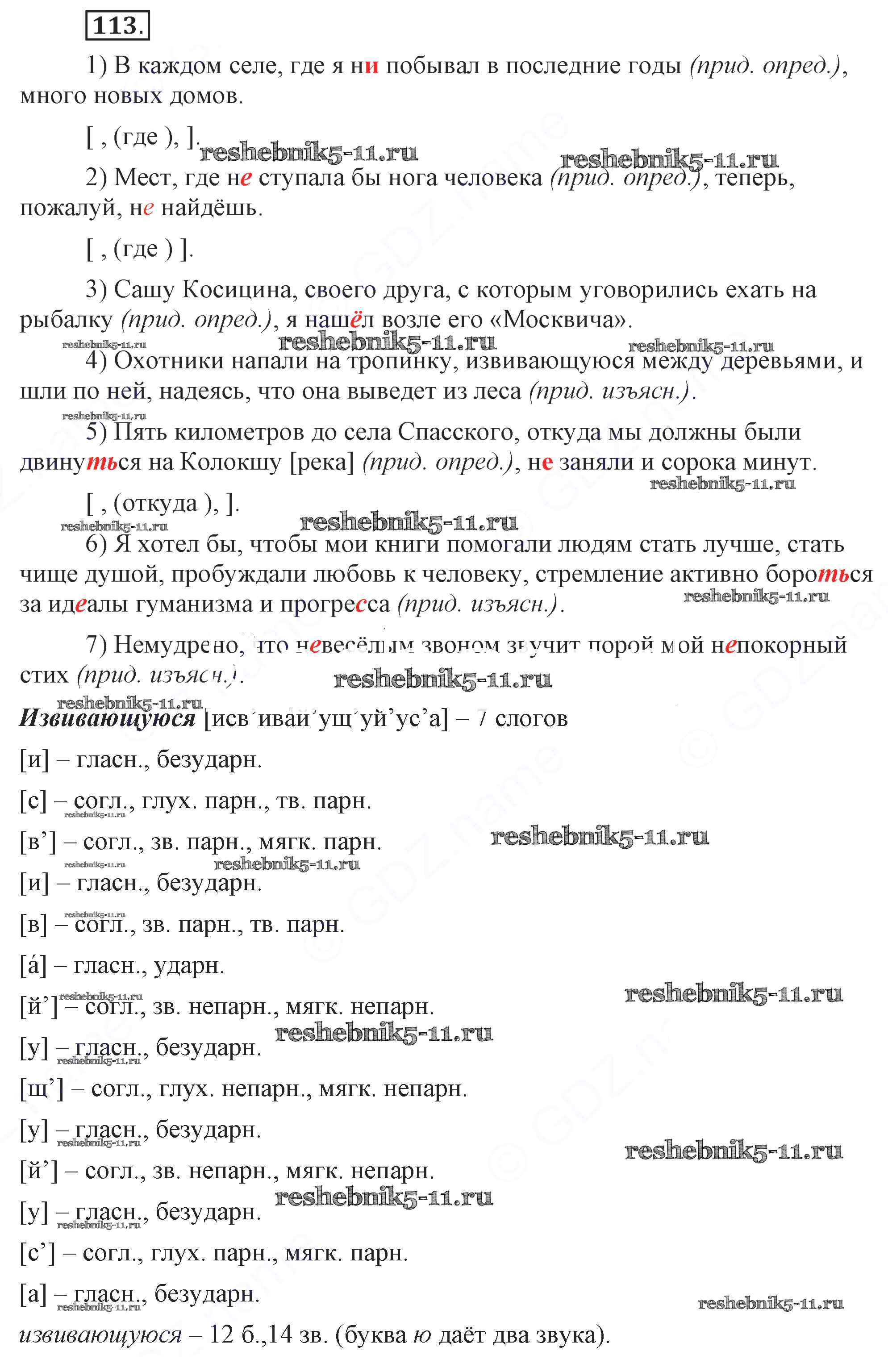 Готовая домашняя работа с ответами по Русскому языку за 9 класс Бархударов, Крючков, Максимов, Чешко Учебник Просвещение 2011 ФГОС - Упражнения 113