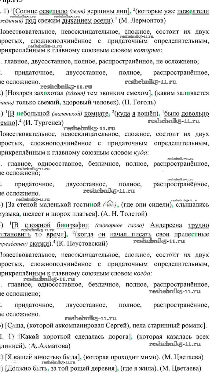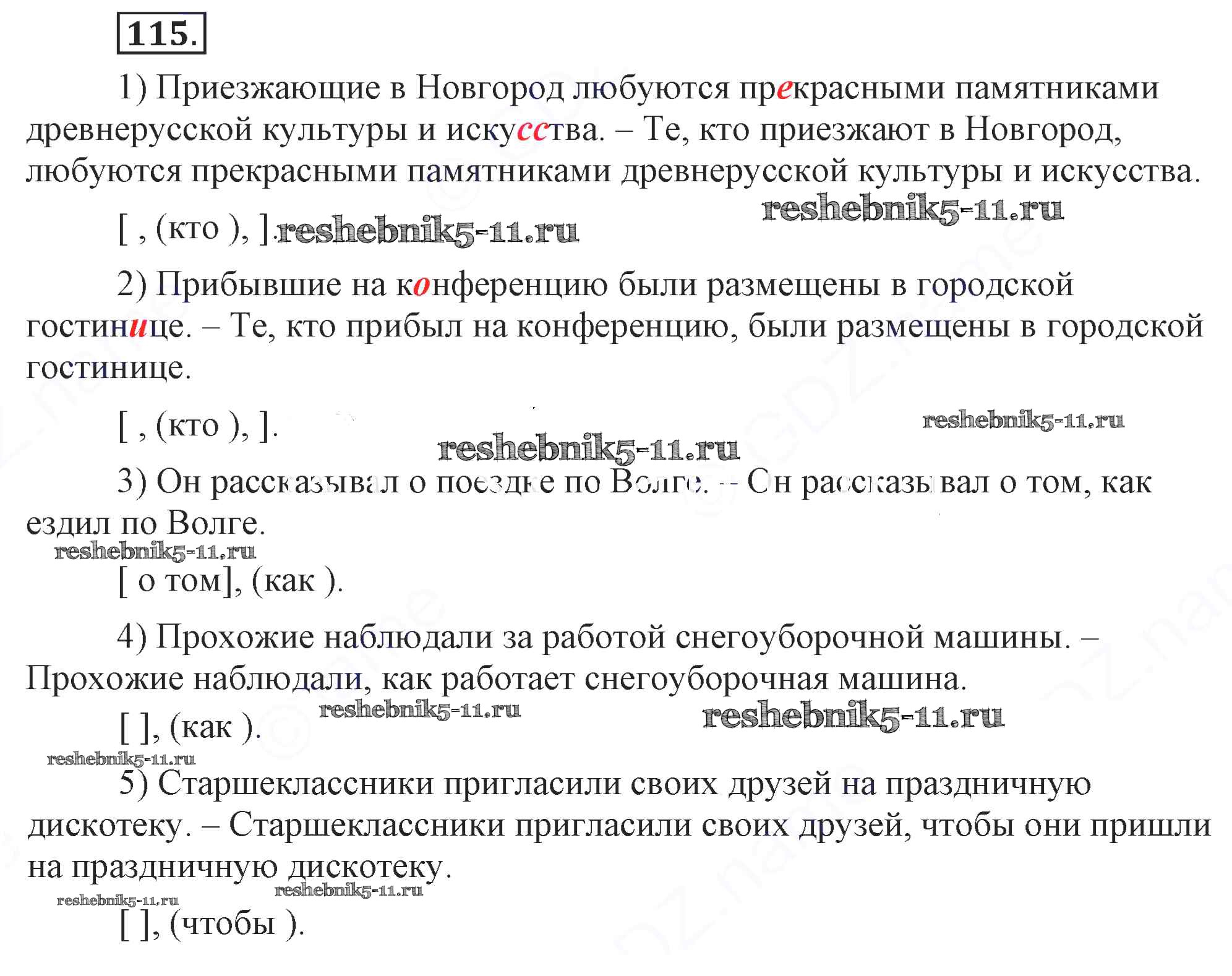 Готовая домашняя работа с ответами по Русскому языку за 9 класс Бархударов, Крючков, Максимов, Чешко Учебник Просвещение 2011 ФГОС - Упражнения 115