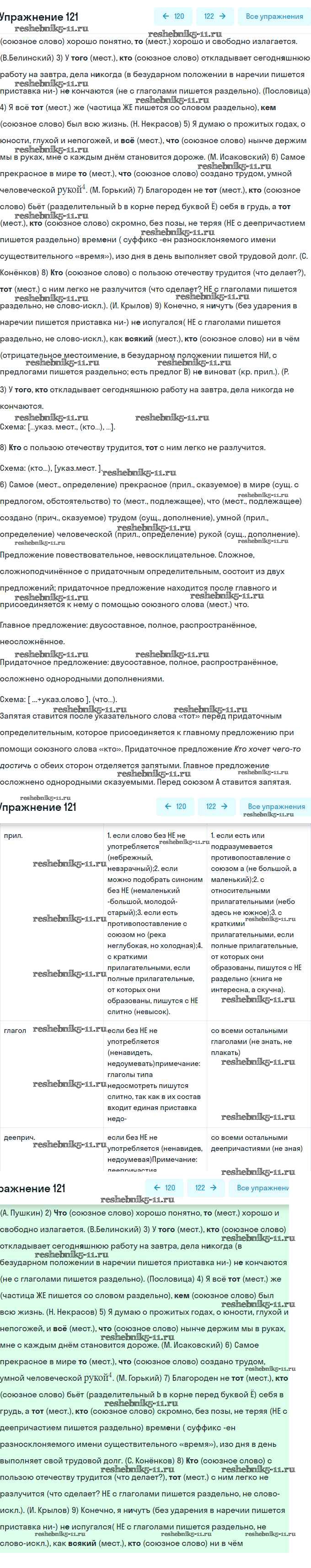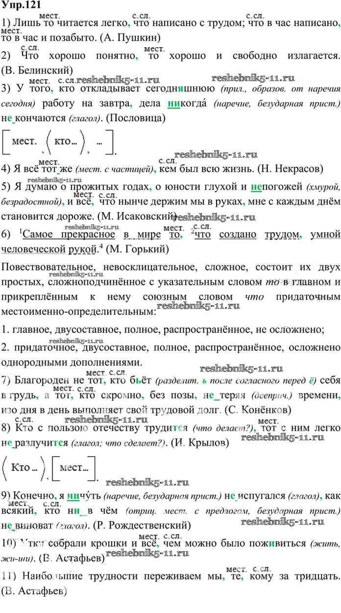 Готовая домашняя работа с ответами по Русскому языку за 9 класс Бархударов, Крючков, Максимов, Чешко Учебник Просвещение 2011 ФГОС - Упражнения 121