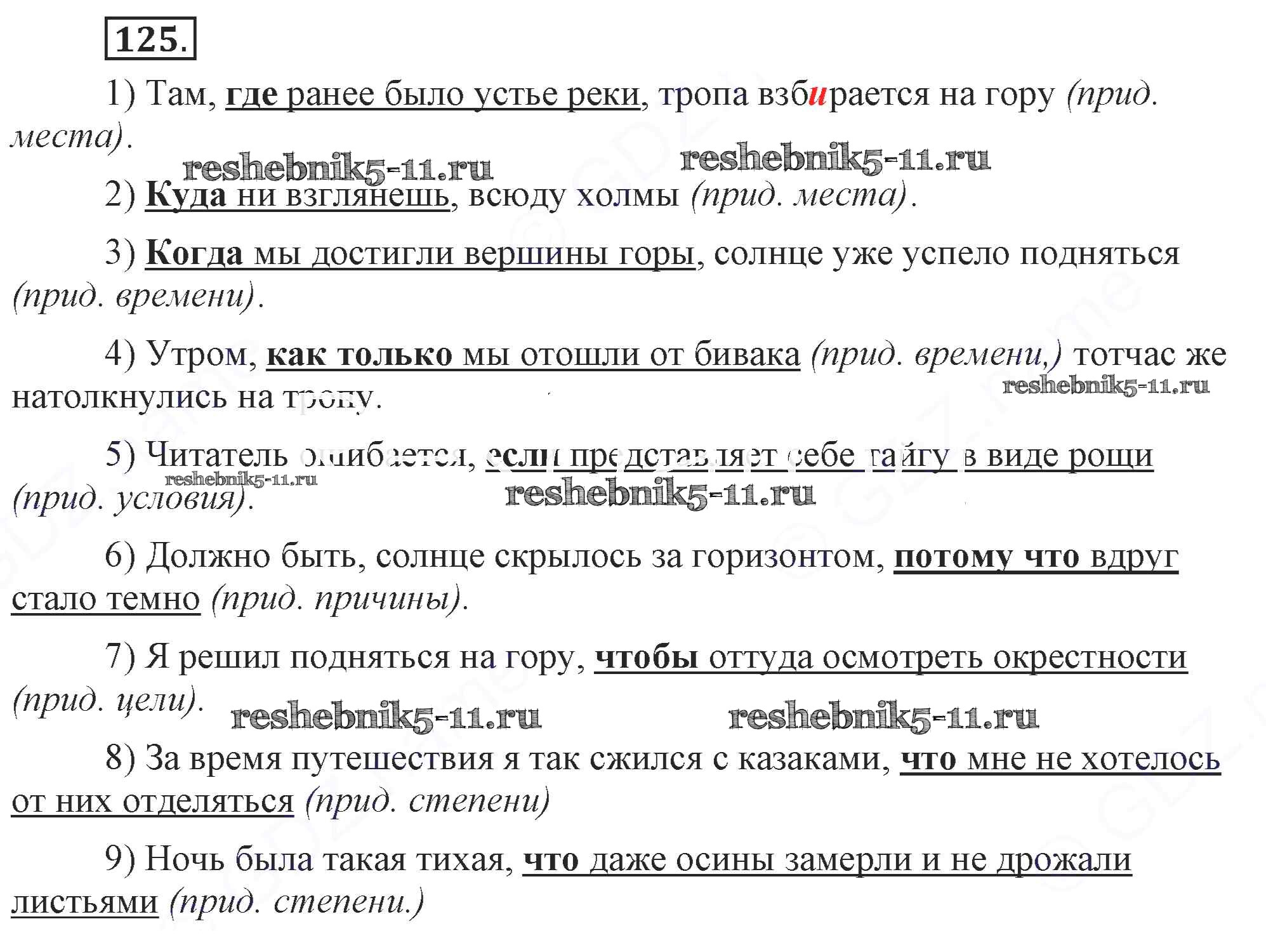 Готовая домашняя работа с ответами по Русскому языку за 9 класс Бархударов, Крючков, Максимов, Чешко Учебник Просвещение 2011 ФГОС - Упражнения 125