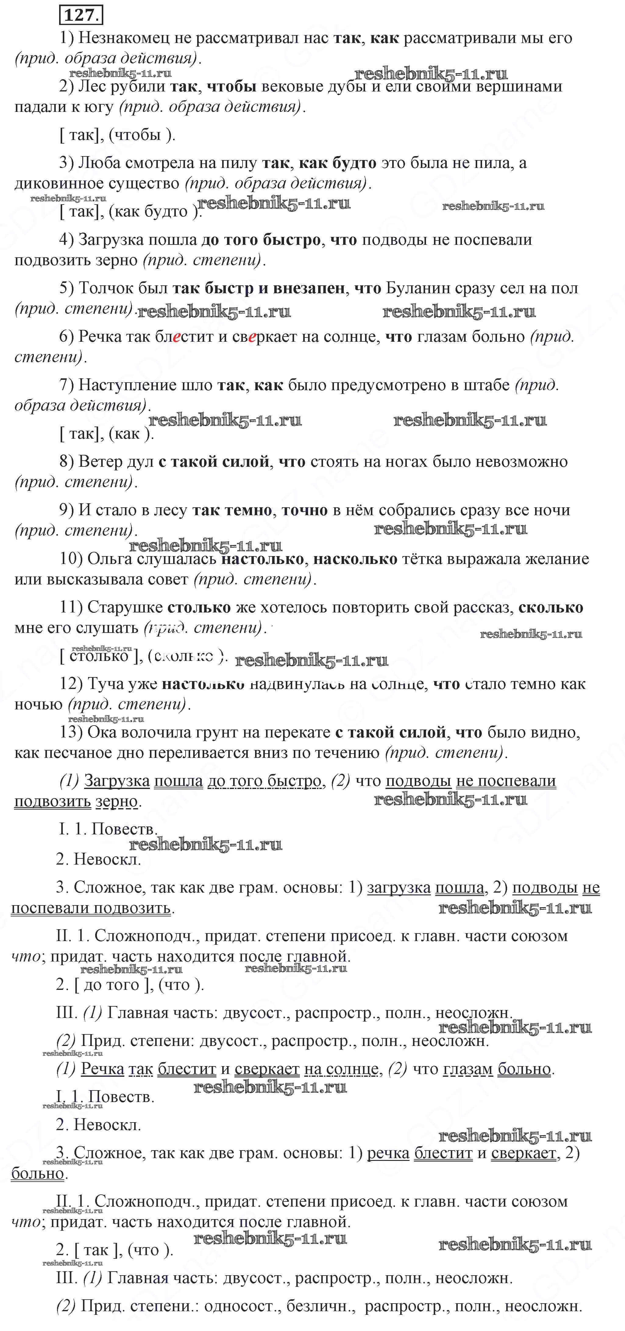Готовая домашняя работа с ответами по Русскому языку за 9 класс Бархударов, Крючков, Максимов, Чешко Учебник Просвещение 2011 ФГОС - Упражнения 127