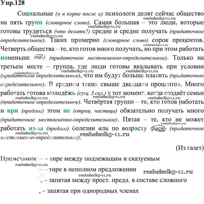 Готовая домашняя работа с ответами по Русскому языку за 9 класс Бархударов, Крючков, Максимов, Чешко Учебник Просвещение 2011 ФГОС - Упражнения 128