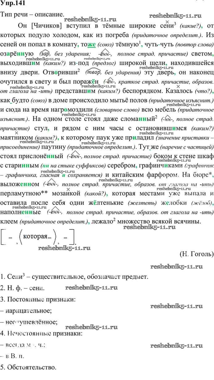 Готовая домашняя работа с ответами по Русскому языку за 9 класс Бархударов, Крючков, Максимов, Чешко Учебник Просвещение 2011 ФГОС - Упражнения 141