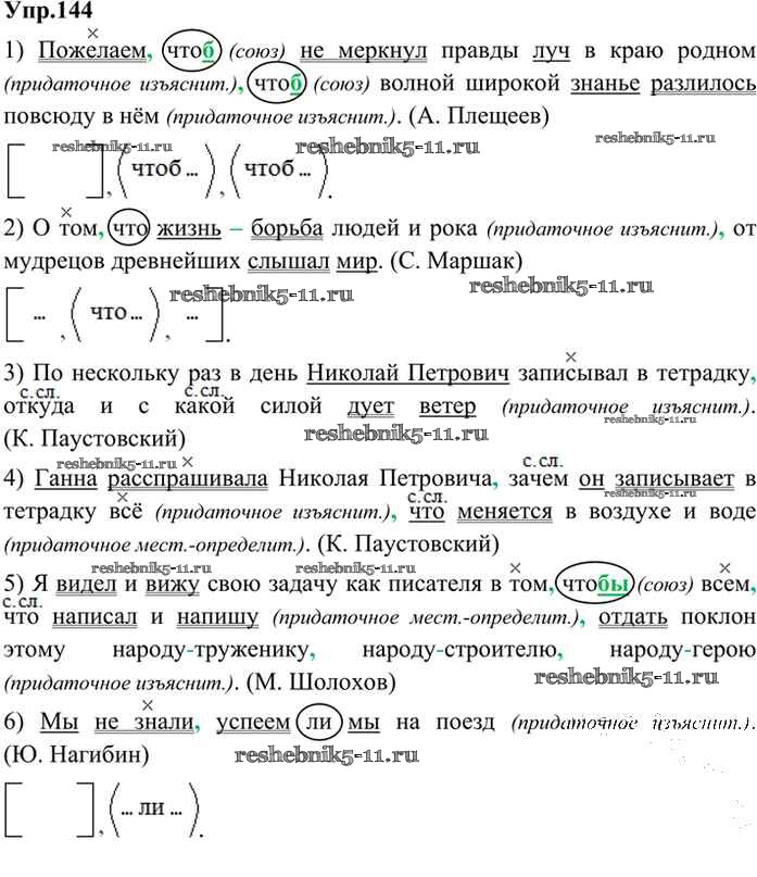 Готовая домашняя работа с ответами по Русскому языку за 9 класс Бархударов, Крючков, Максимов, Чешко Учебник Просвещение 2011 ФГОС - Упражнения 144