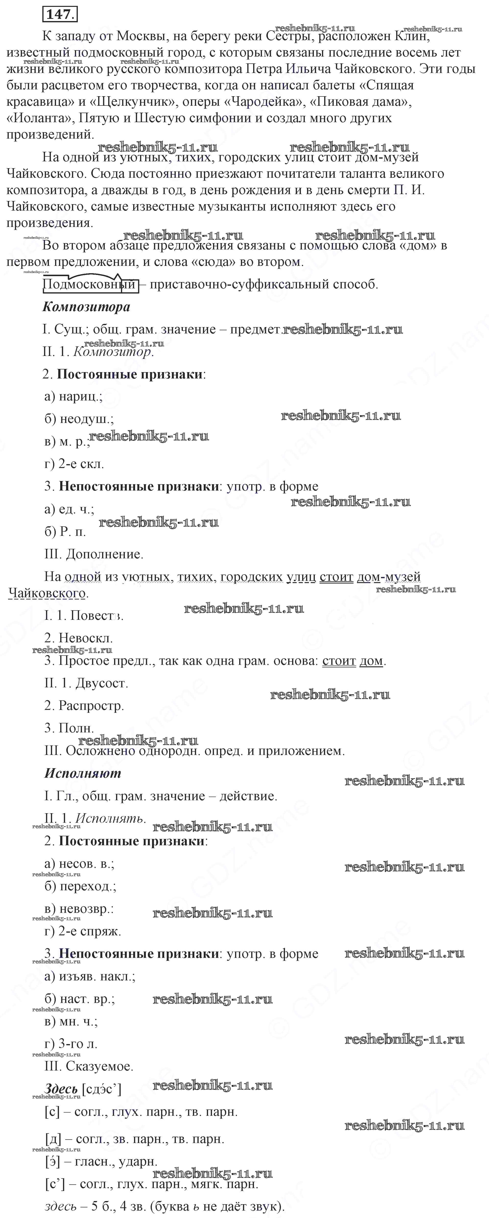 Готовая домашняя работа с ответами по Русскому языку за 9 класс Бархударов, Крючков, Максимов, Чешко Учебник Просвещение 2011 ФГОС - Упражнения 147