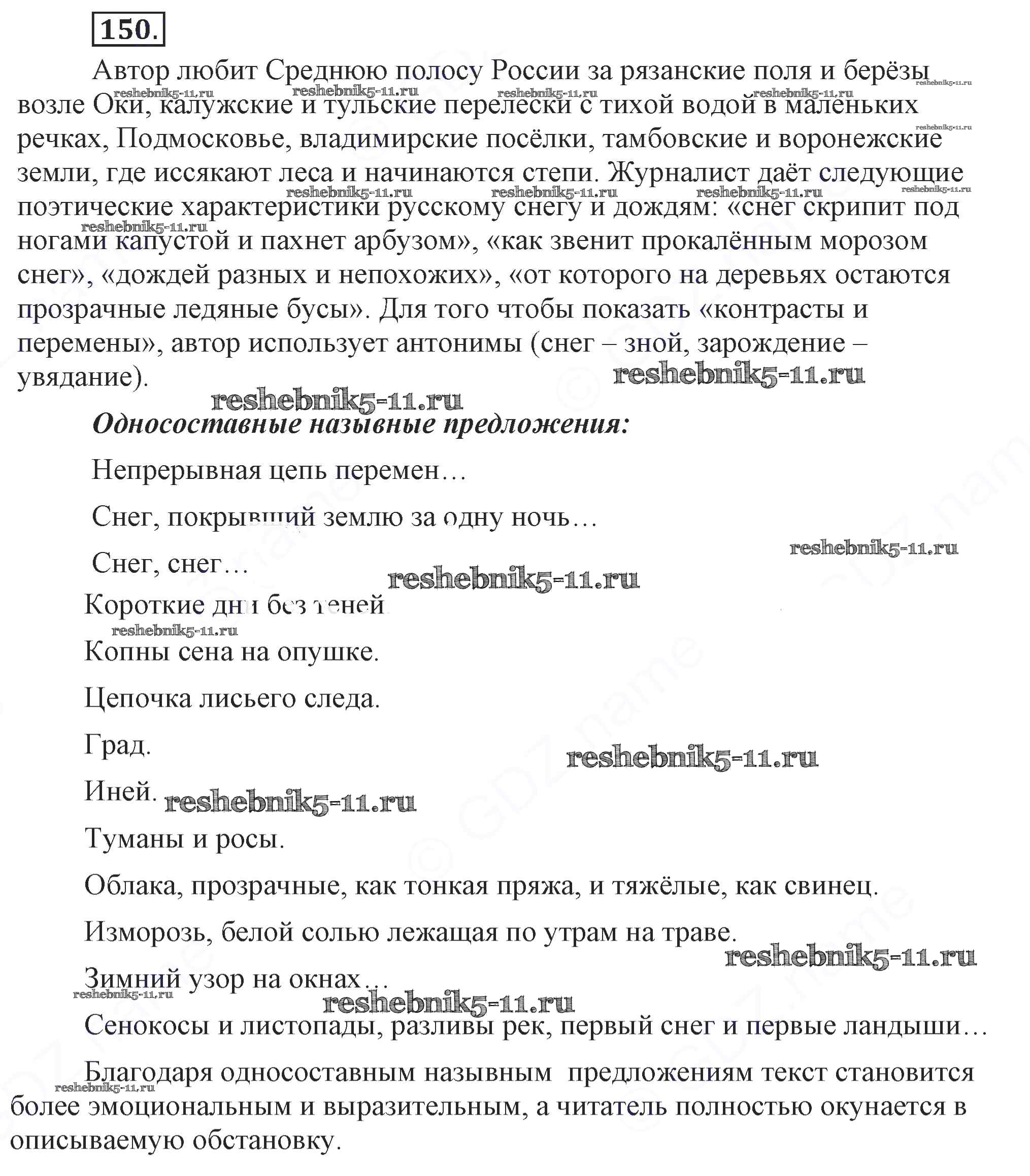 Готовая домашняя работа с ответами по Русскому языку за 9 класс Бархударов, Крючков, Максимов, Чешко Учебник Просвещение 2011 ФГОС - Упражнения 150