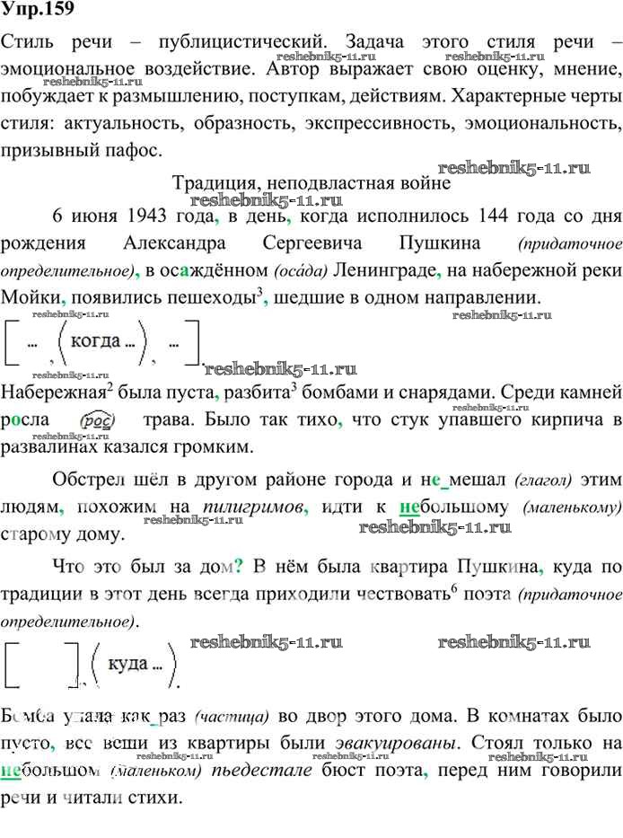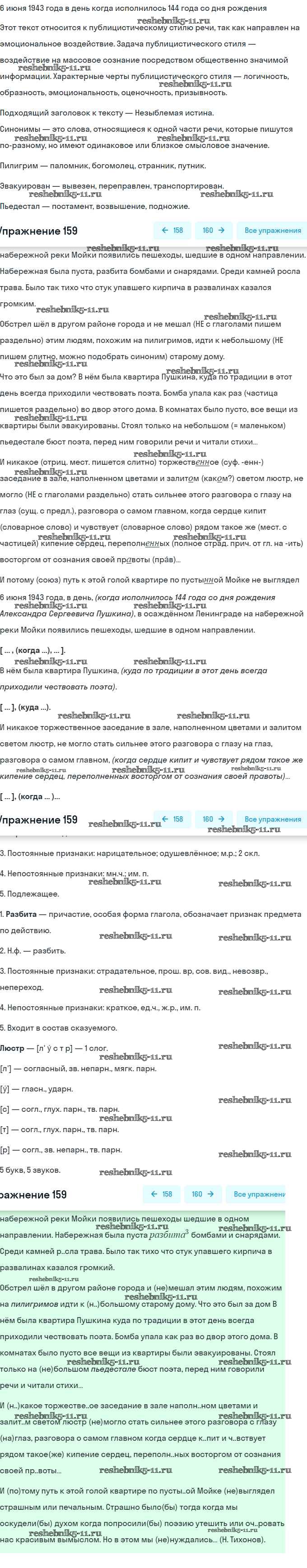 Готовая домашняя работа с ответами по Русскому языку за 9 класс Бархударов, Крючков, Максимов, Чешко Учебник Просвещение 2011 ФГОС - Упражнения 159