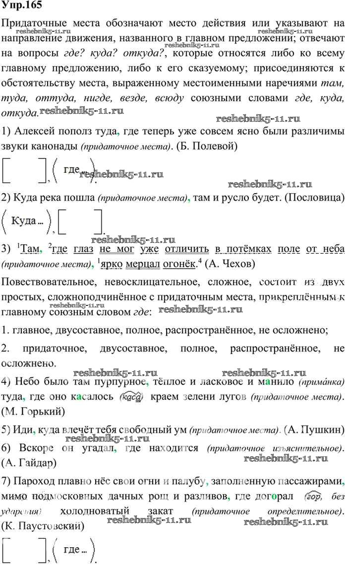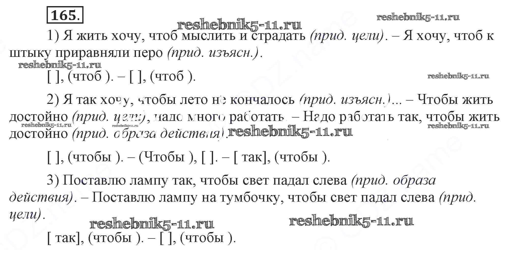 Готовая домашняя работа с ответами по Русскому языку за 9 класс Бархударов, Крючков, Максимов, Чешко Учебник Просвещение 2011 ФГОС - Упражнения 165