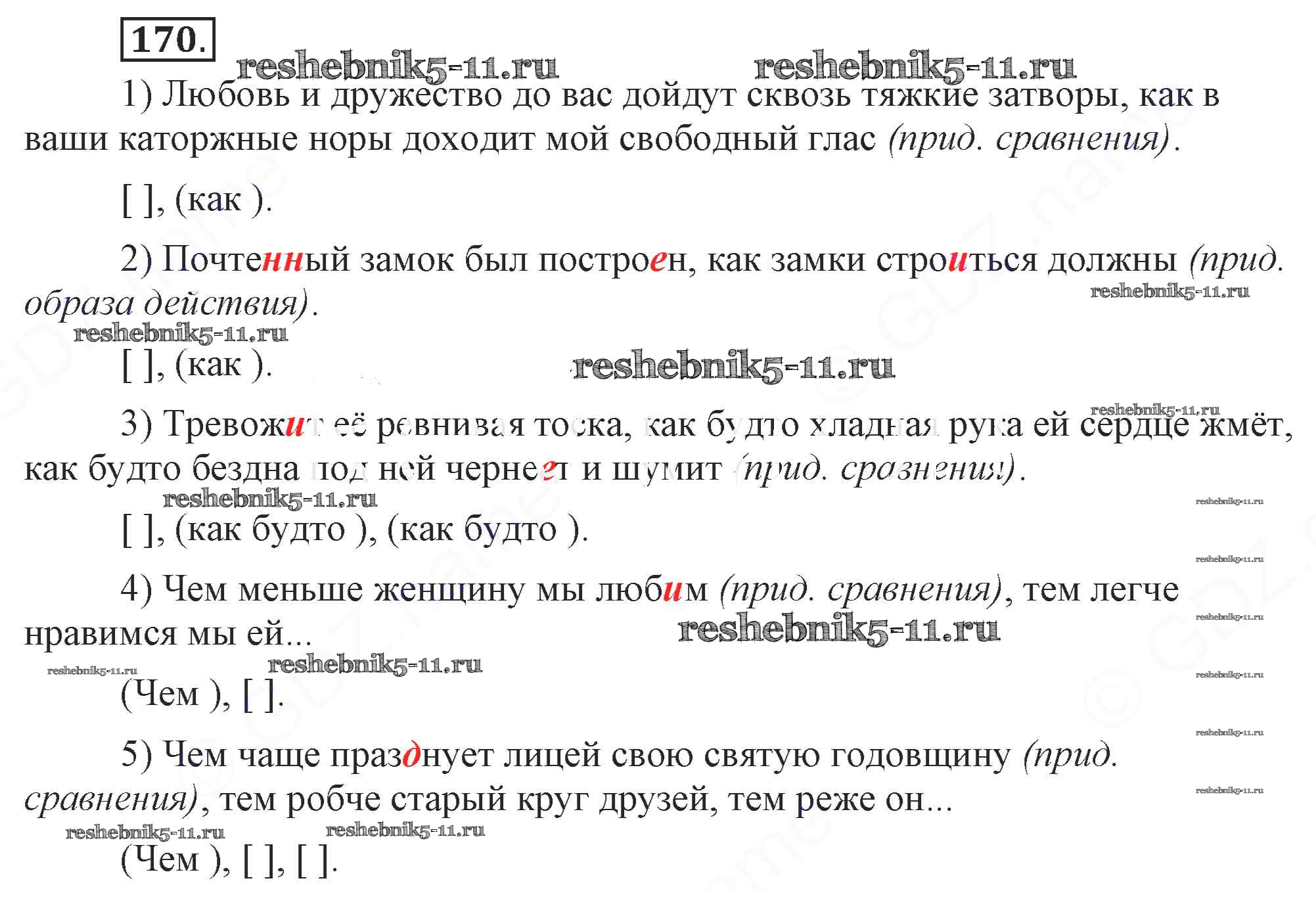 Готовая домашняя работа с ответами по Русскому языку за 9 класс Бархударов, Крючков, Максимов, Чешко Учебник Просвещение 2011 ФГОС - Упражнения 170