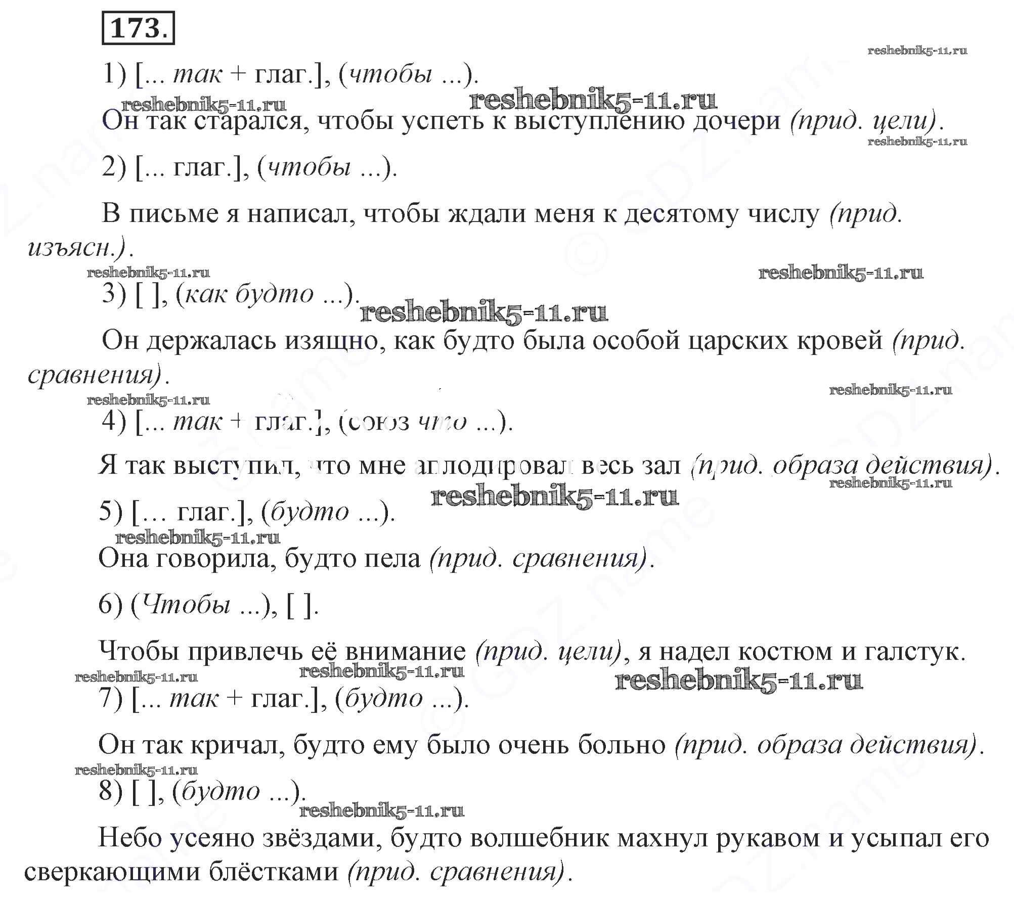 Готовая домашняя работа с ответами по Русскому языку за 9 класс Бархударов, Крючков, Максимов, Чешко Учебник Просвещение 2011 ФГОС - Упражнения 173