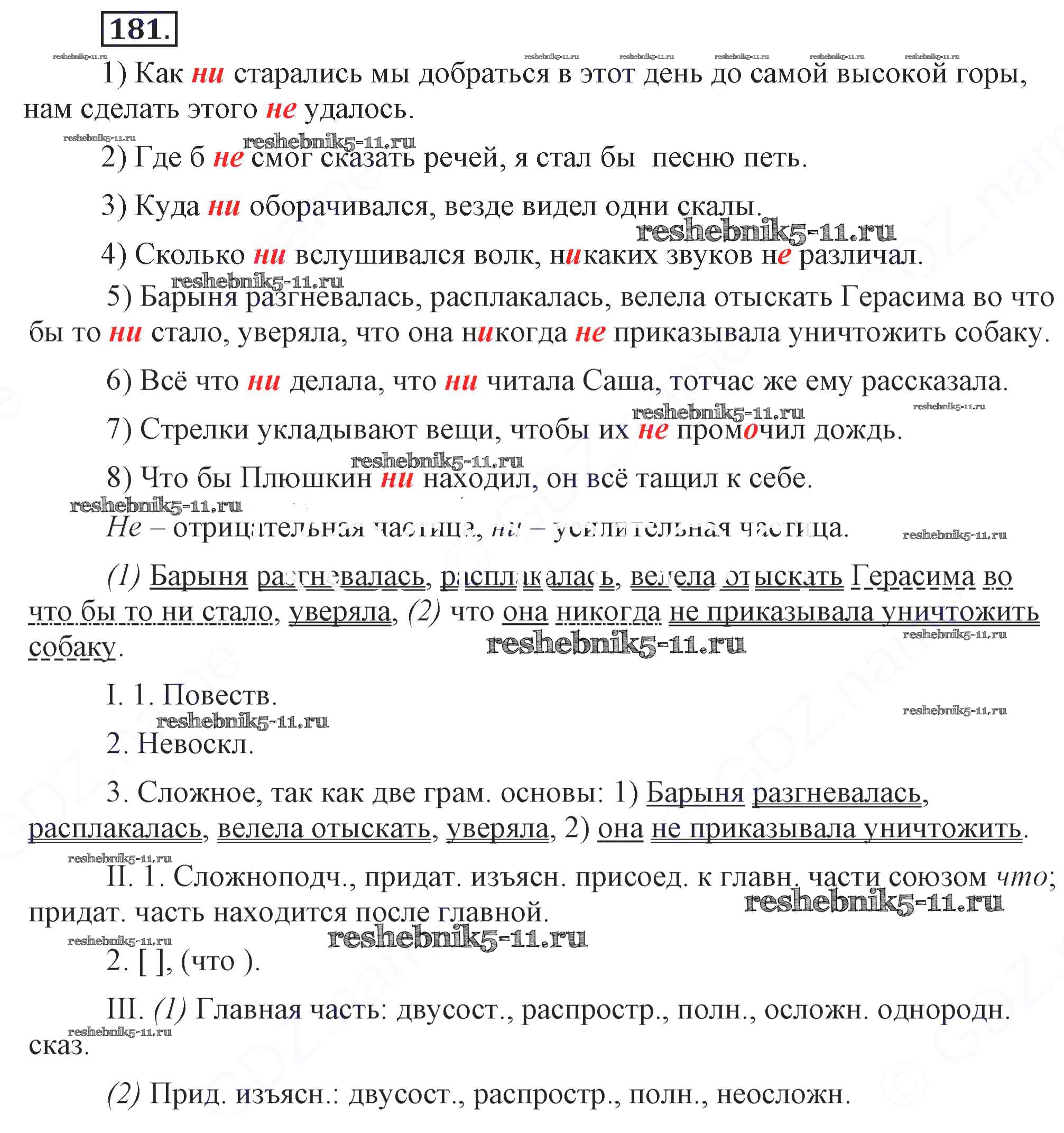 Готовая домашняя работа с ответами по Русскому языку за 9 класс Бархударов, Крючков, Максимов, Чешко Учебник Просвещение 2011 ФГОС - Упражнения 181
