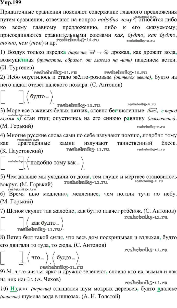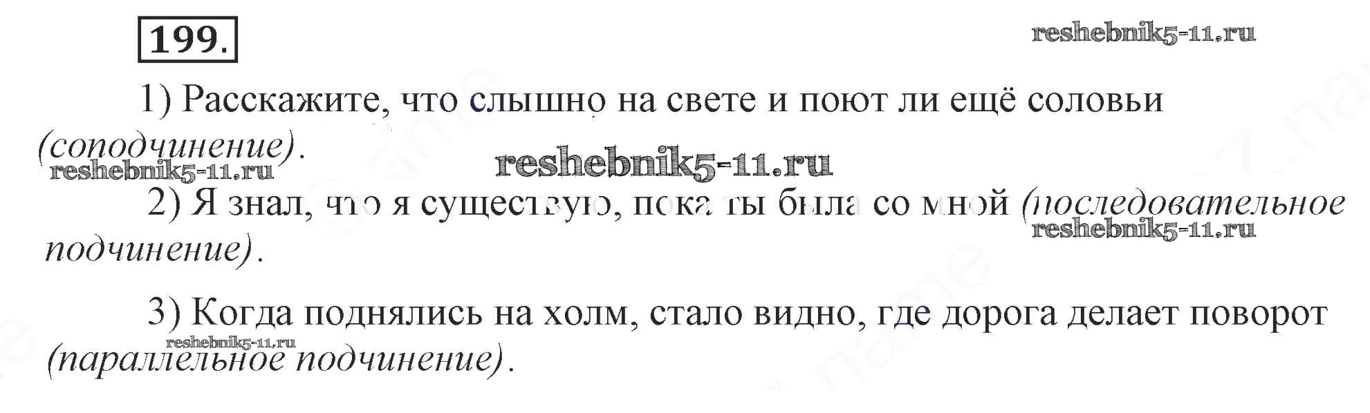 Готовая домашняя работа с ответами по Русскому языку за 9 класс Бархударов, Крючков, Максимов, Чешко Учебник Просвещение 2011 ФГОС - Упражнения 199