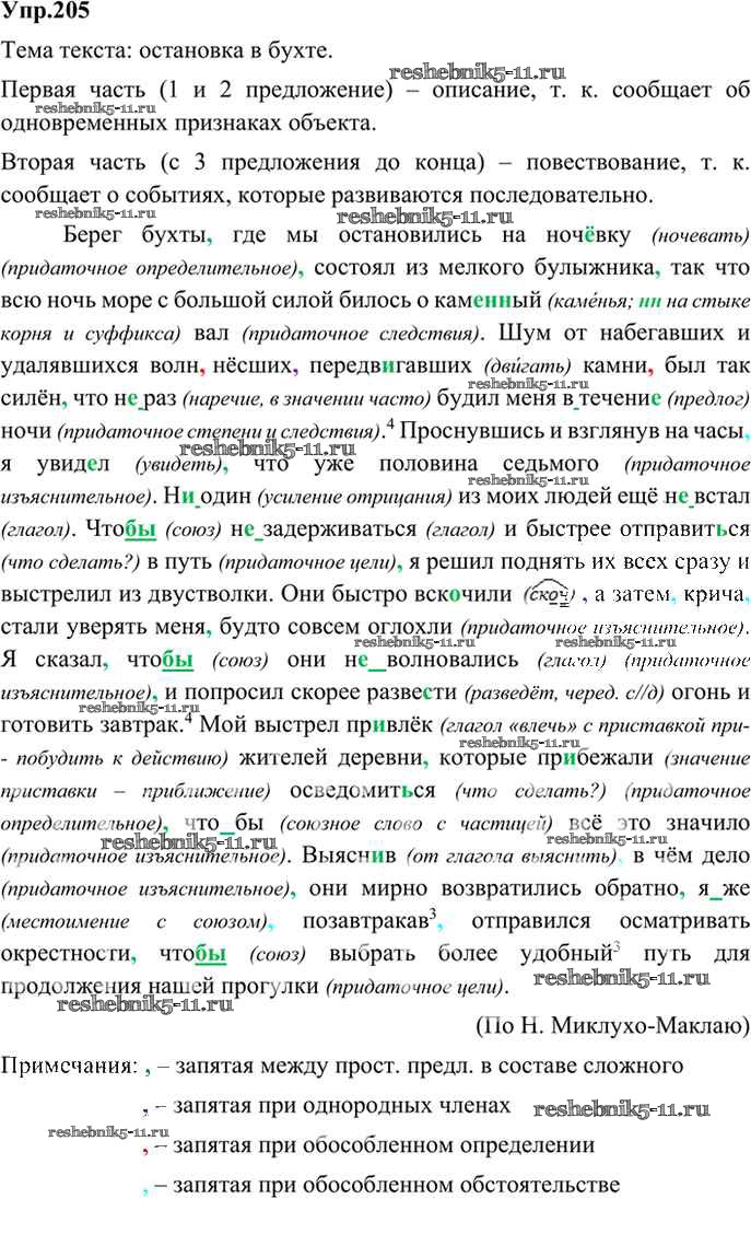 Готовая домашняя работа с ответами по Русскому языку за 9 класс Бархударов, Крючков, Максимов, Чешко Учебник Просвещение 2011 ФГОС - Упражнения 205