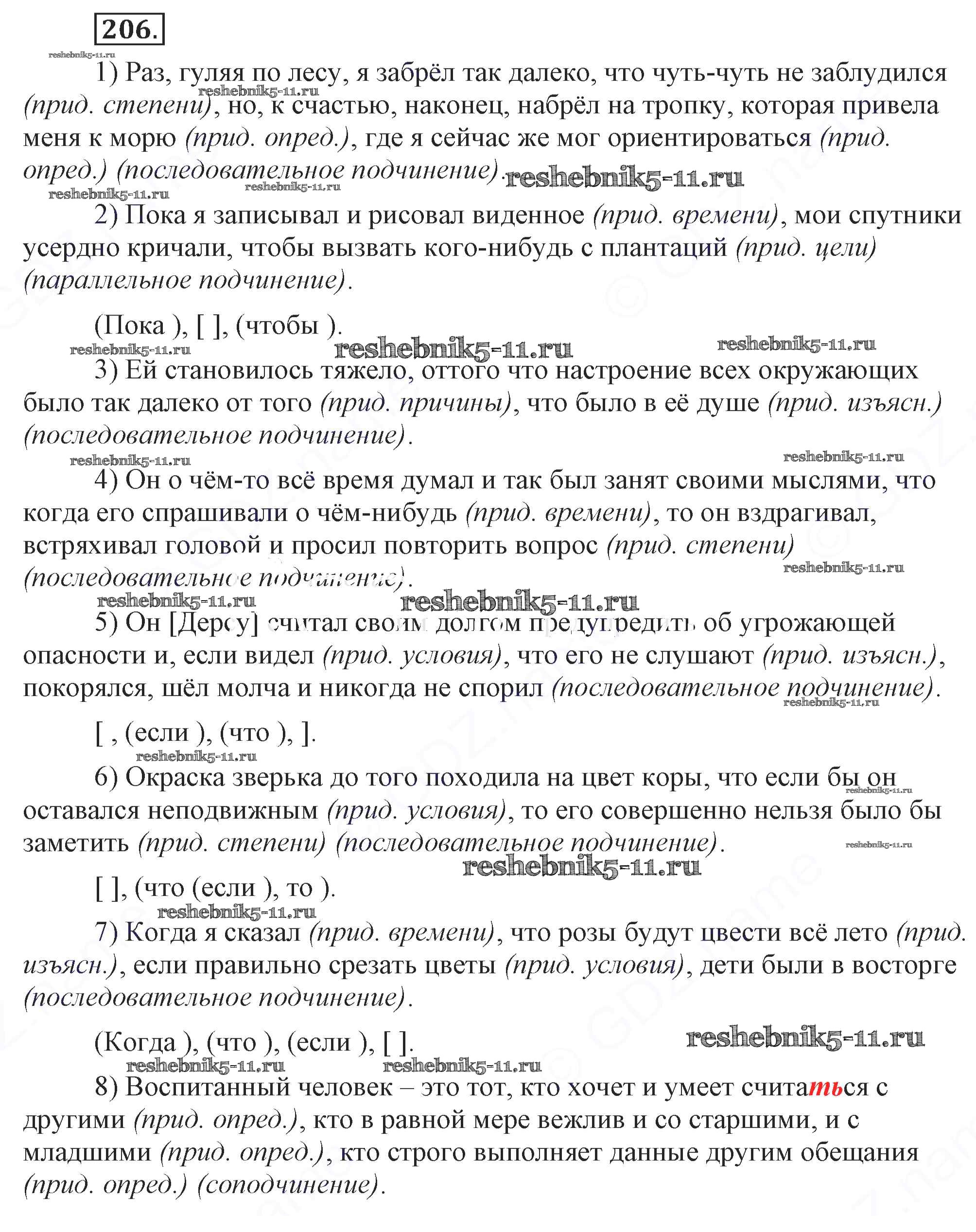 Готовая домашняя работа с ответами по Русскому языку за 9 класс Бархударов, Крючков, Максимов, Чешко Учебник Просвещение 2011 ФГОС - Упражнения 206