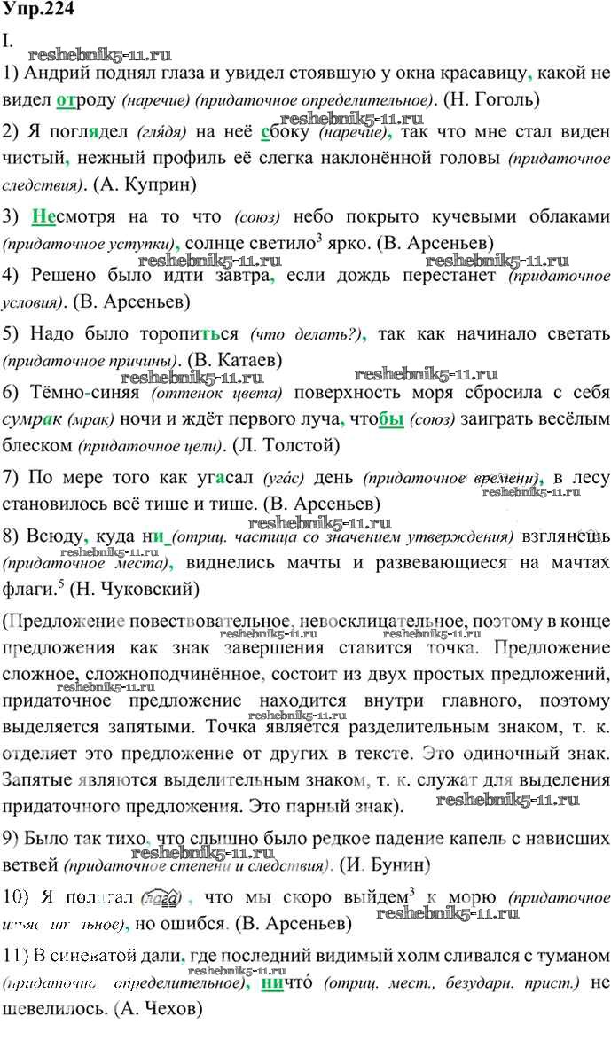 Готовая домашняя работа с ответами по Русскому языку за 9 класс Бархударов, Крючков, Максимов, Чешко Учебник Просвещение 2011 ФГОС - Упражнения 224